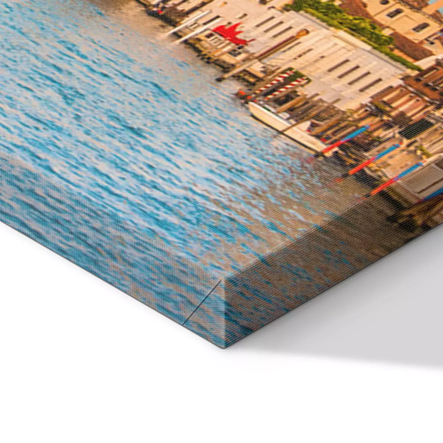De print wordt aangebracht op hoogwaardig canvas dat op een schildersweefgetouw (spieraam) wordt gespannen. Omdat de print de zijranden bedekt, hoeft het ontwerp niet met een extra kader te worden omlijst. Wij raden ook composities aan die uit meerdere foto's bestaan en zo een coherente compositie vormen.