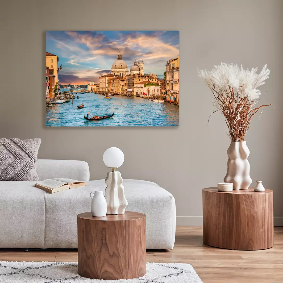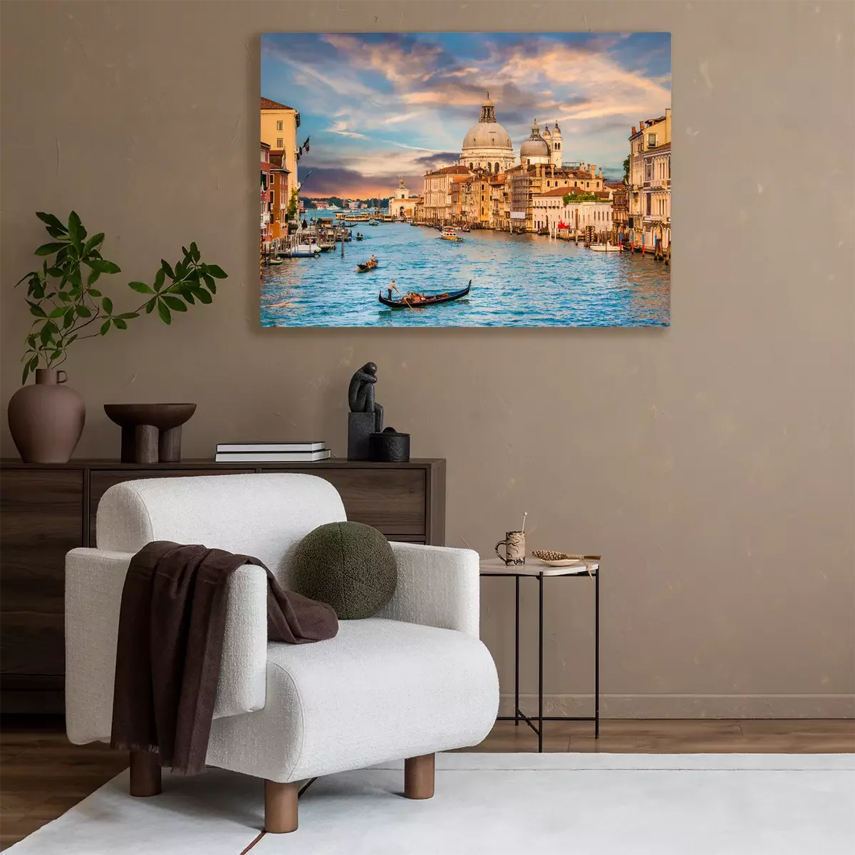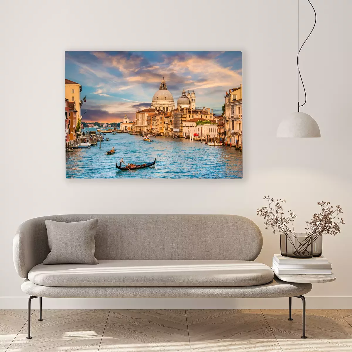 Panorama van het Canal Grande bij zonsondergang in Venetië