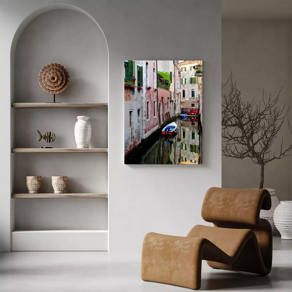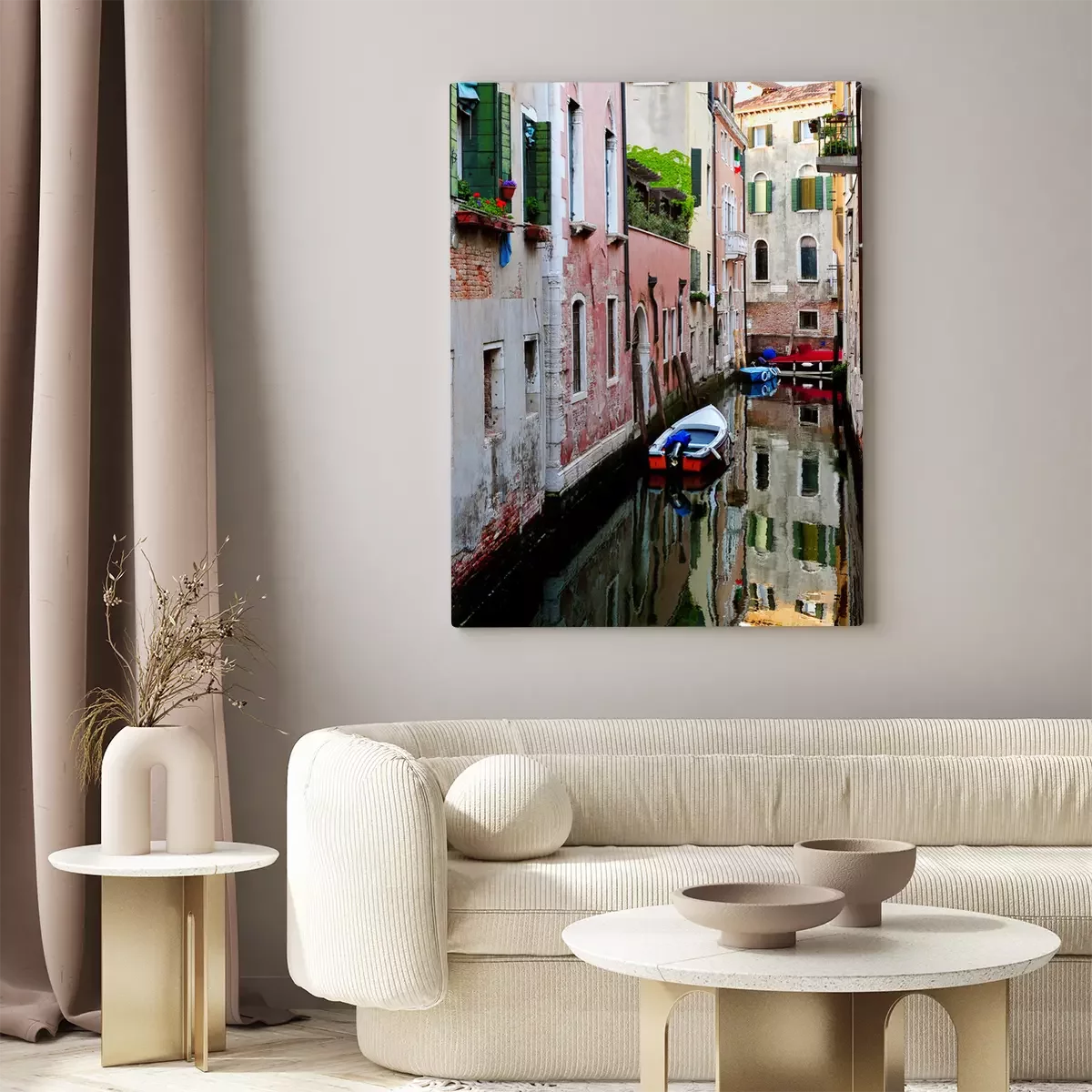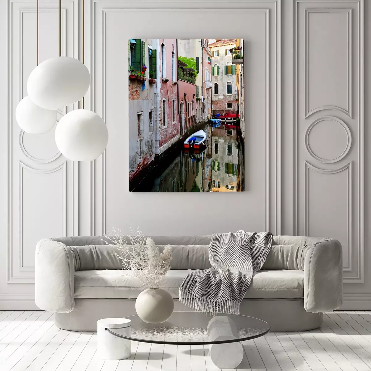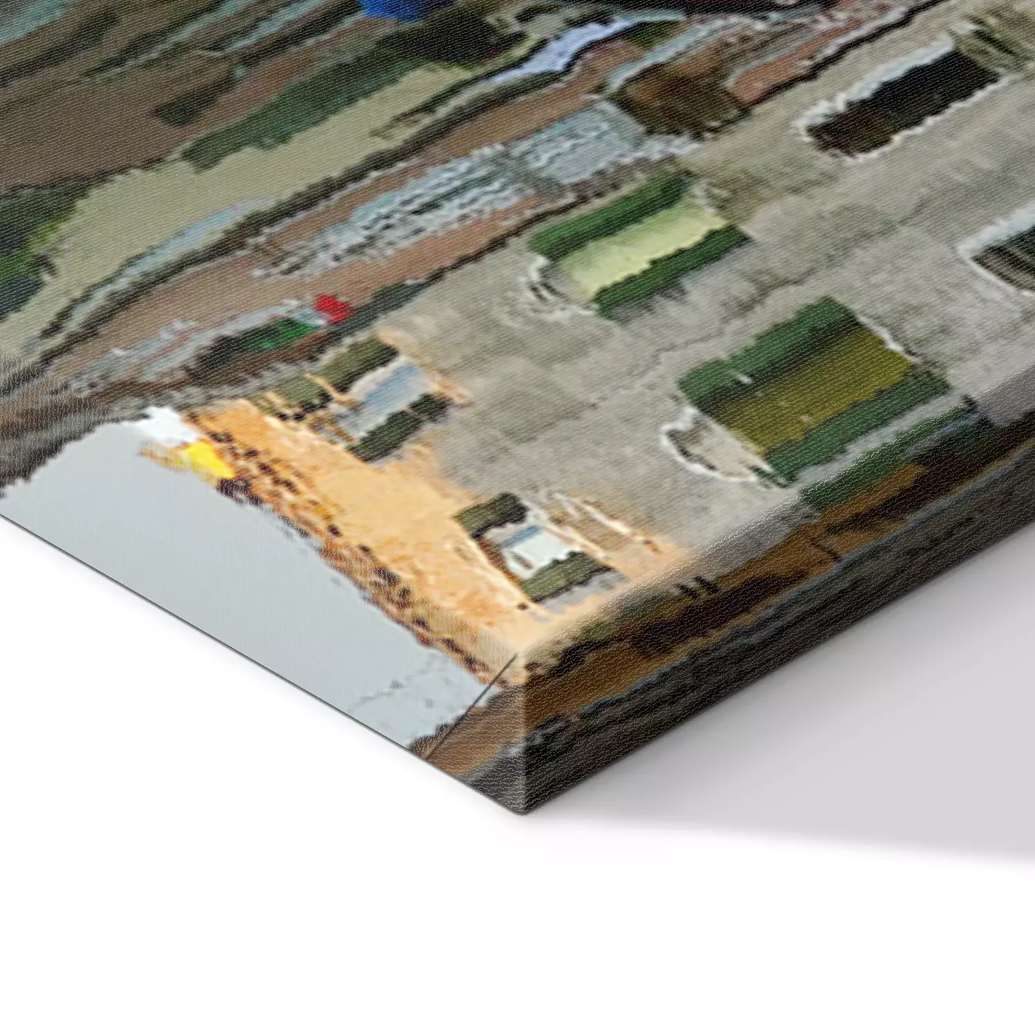 De print wordt aangebracht op hoogwaardig canvas dat op een schildersweefgetouw (spieraam) wordt gespannen. Omdat de print de zijranden bedekt, hoeft het ontwerp niet met een extra kader te worden omlijst. Wij raden ook composities aan die uit meerdere foto's bestaan en zo een coherente compositie vormen.