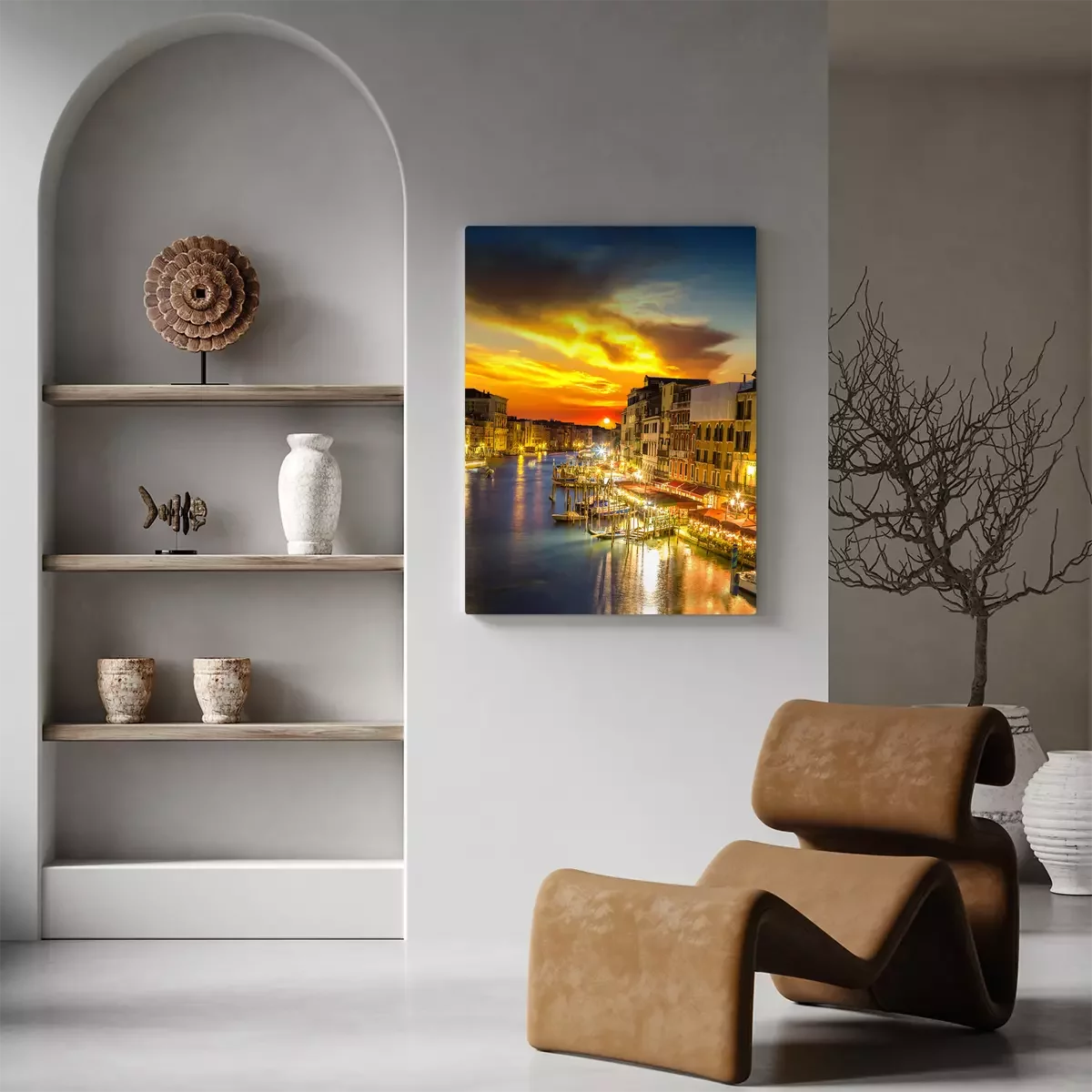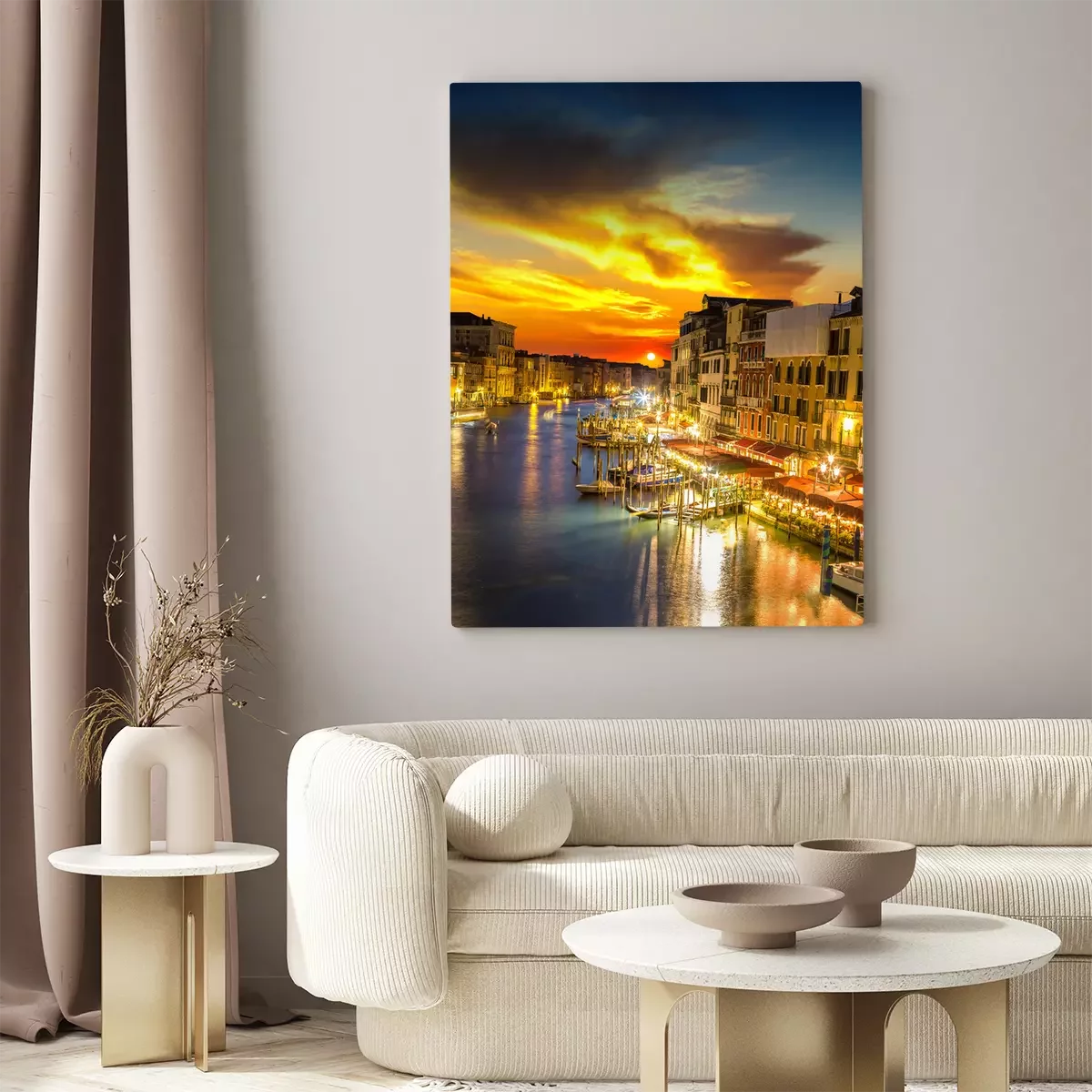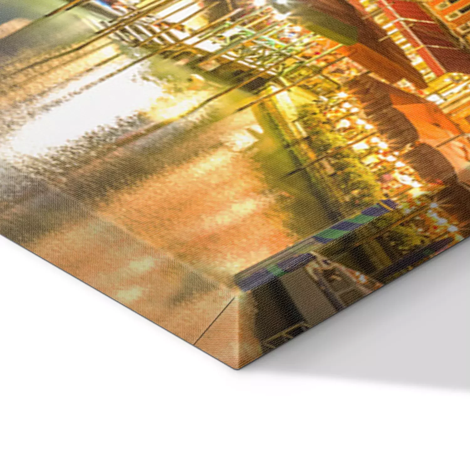 De print wordt aangebracht op hoogwaardig canvas dat op een schildersweefgetouw (spieraam) wordt gespannen. Omdat de print de zijranden bedekt, hoeft het ontwerp niet met een extra kader te worden omlijst. Wij raden ook composities aan die uit meerdere foto's bestaan en zo een coherente compositie vormen.
