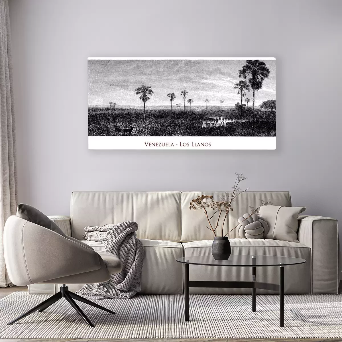 Canvas Venezuela - Los Llanos tropical grassland plain area. Ecoregion flooded by the Orinoco river during the rainy season transforming the area in wetland and savanna