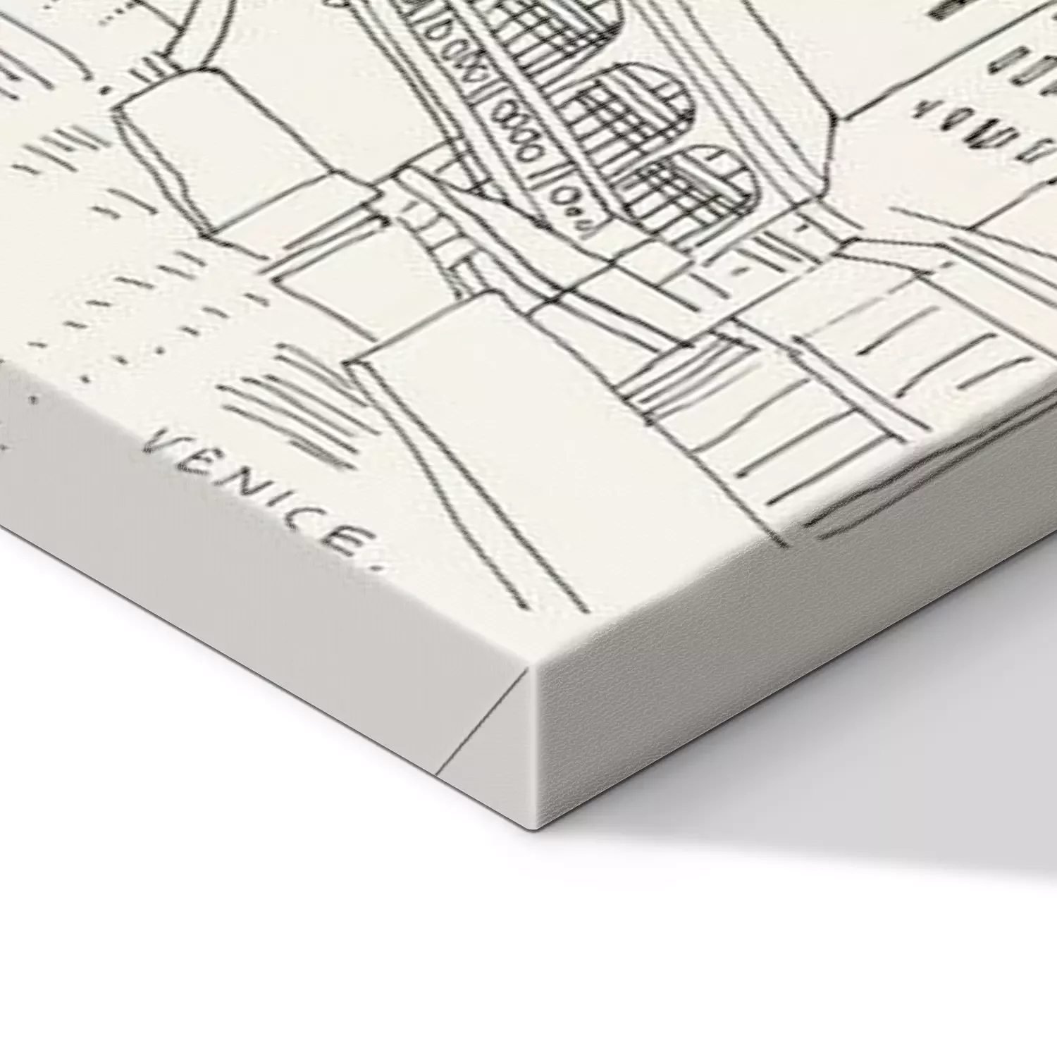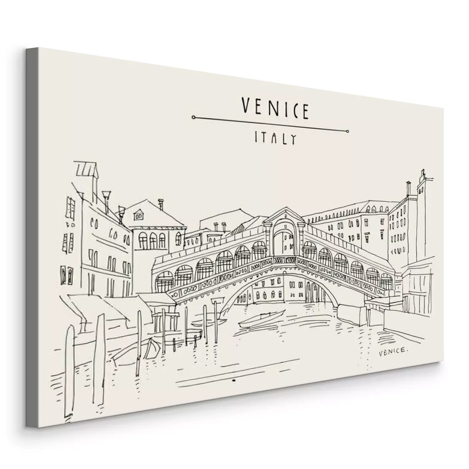 Canvas: Venice, Italy, Europe. Famous Rialto bridge across Grand canal. Travel sketch. Artistic hand drawing. Vector hand drawn postcard, poster, artistic book, calendar or travel booklet illustration