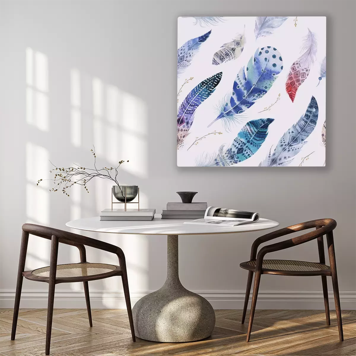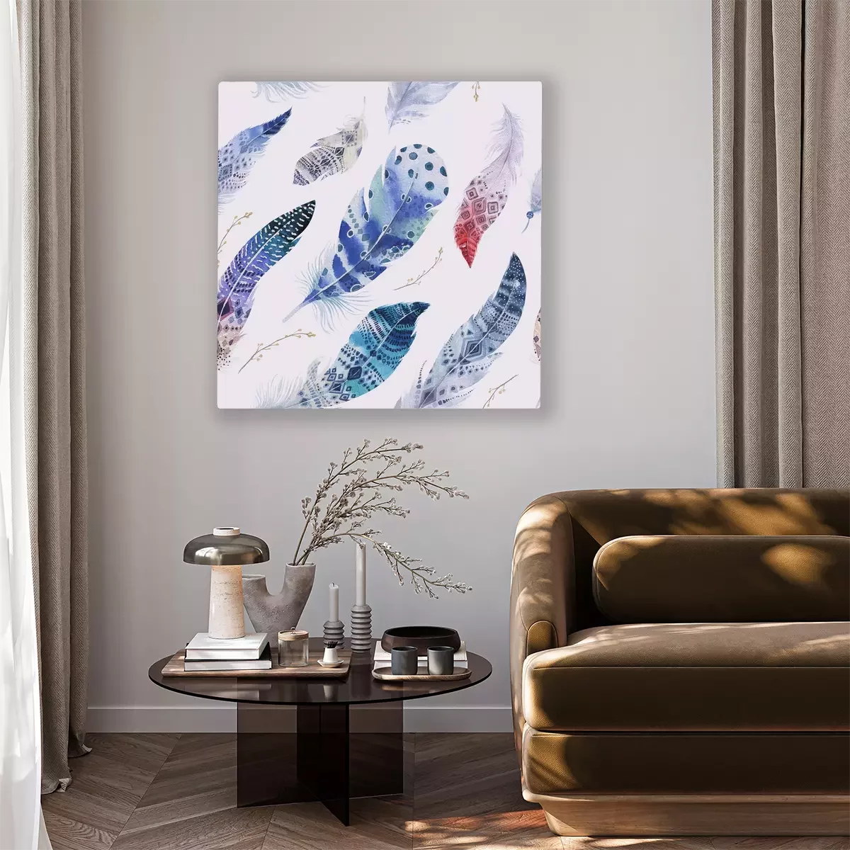 Canvas: Veren patroon. Aquarel elegante achtergrond. aquarel col