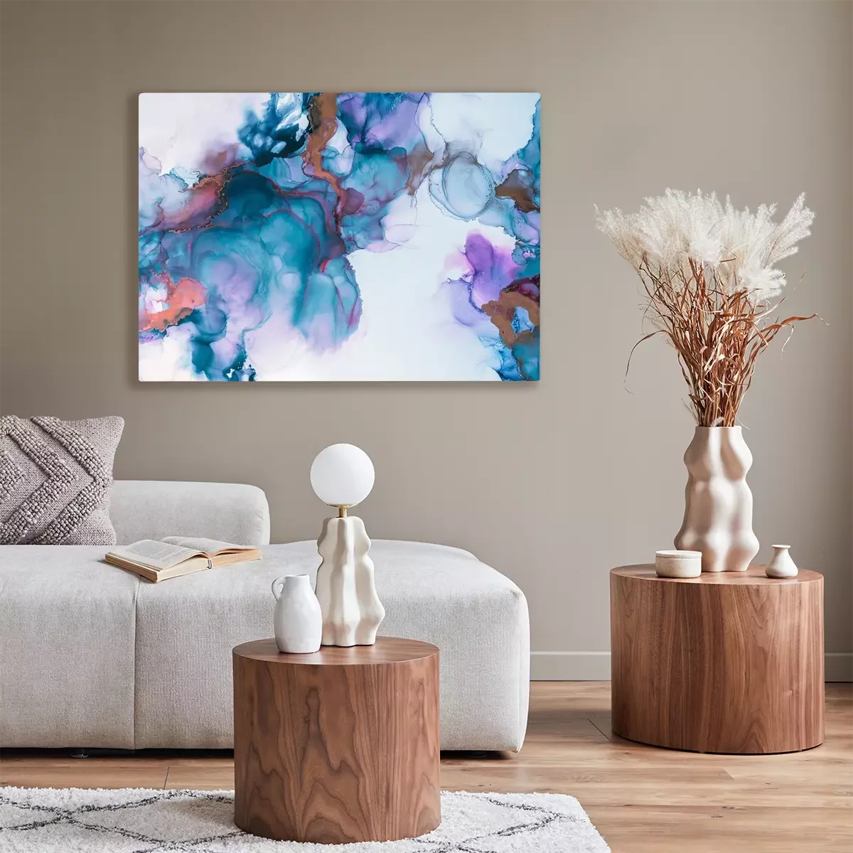 De print wordt aangebracht op hoogwaardig canvas dat op een schildersweefgetouw (spieraam) wordt gespannen. Omdat de print de zijranden bedekt, hoeft het ontwerp niet met een extra kader te worden omlijst. Wij raden ook composities aan die uit meerdere foto's bestaan en zo een coherente compositie vormen.