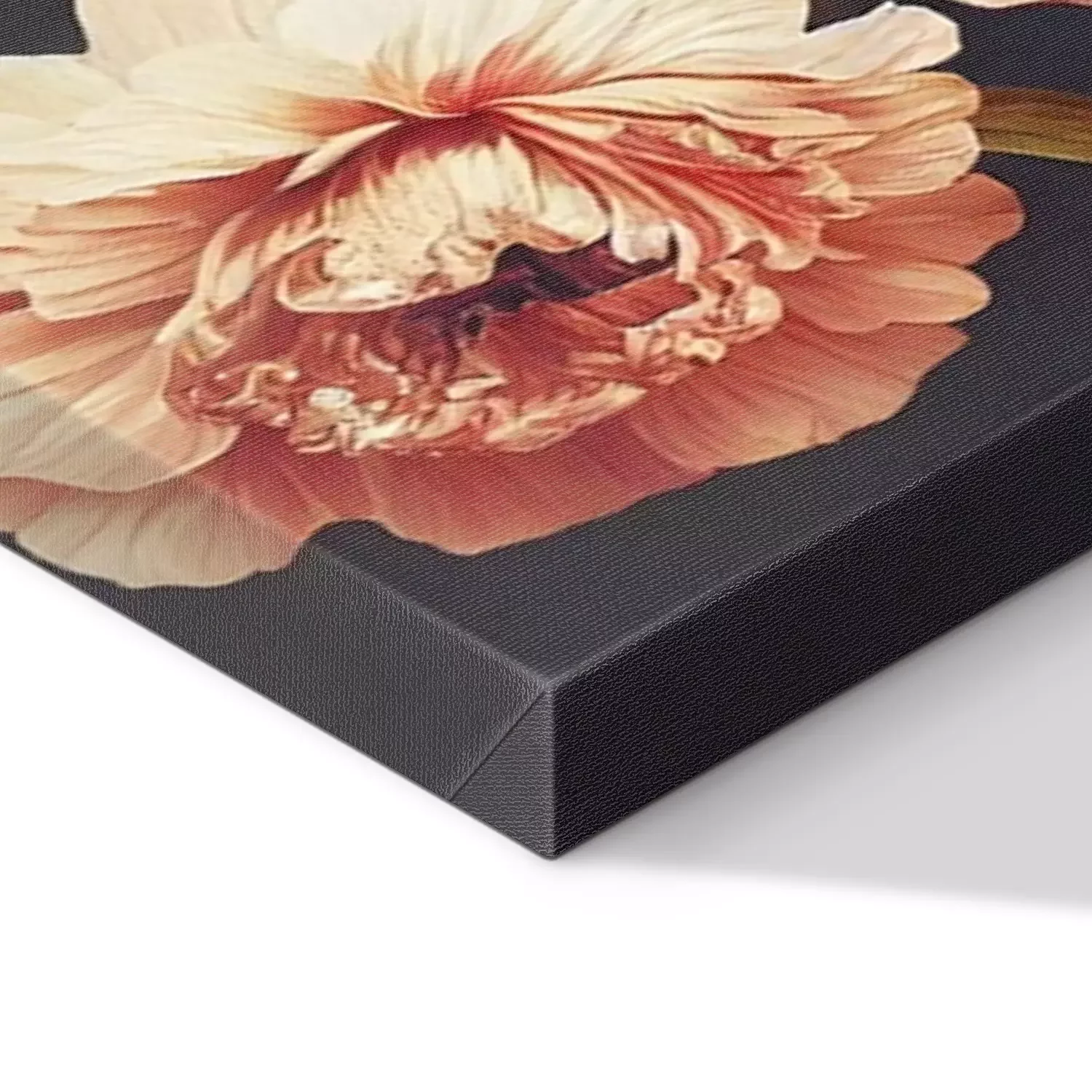 De print wordt aangebracht op hoogwaardig canvas dat op een schildersweefgetouw (spieraam) wordt gespannen. Omdat de print de zijranden bedekt, hoeft het ontwerp niet met een extra kader te worden omlijst. Wij raden ook composities aan die uit meerdere foto's bestaan en zo een coherente compositie vormen.