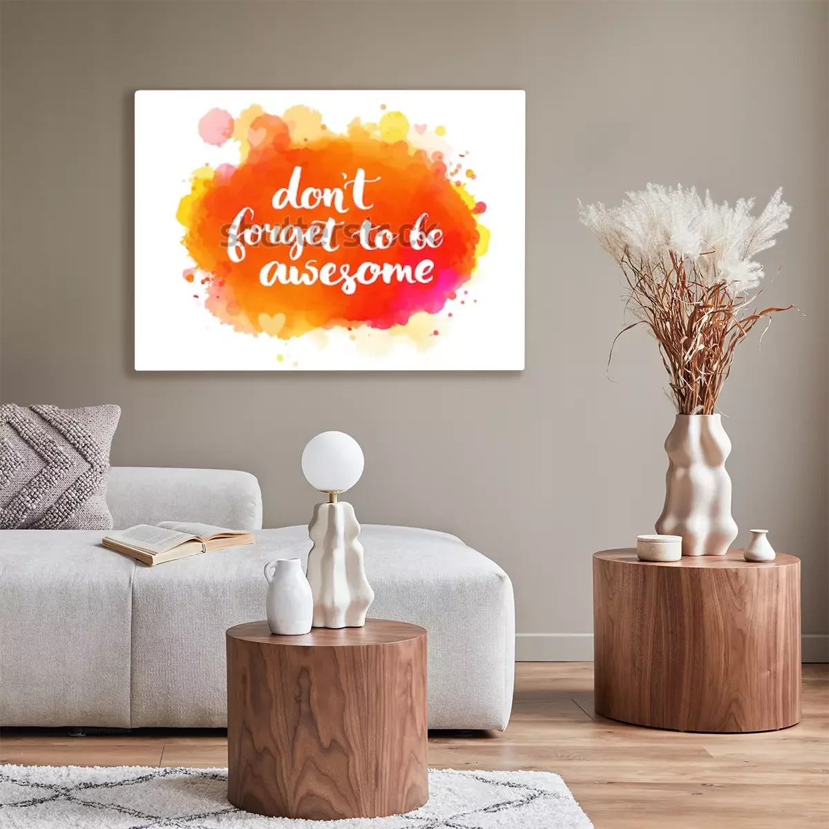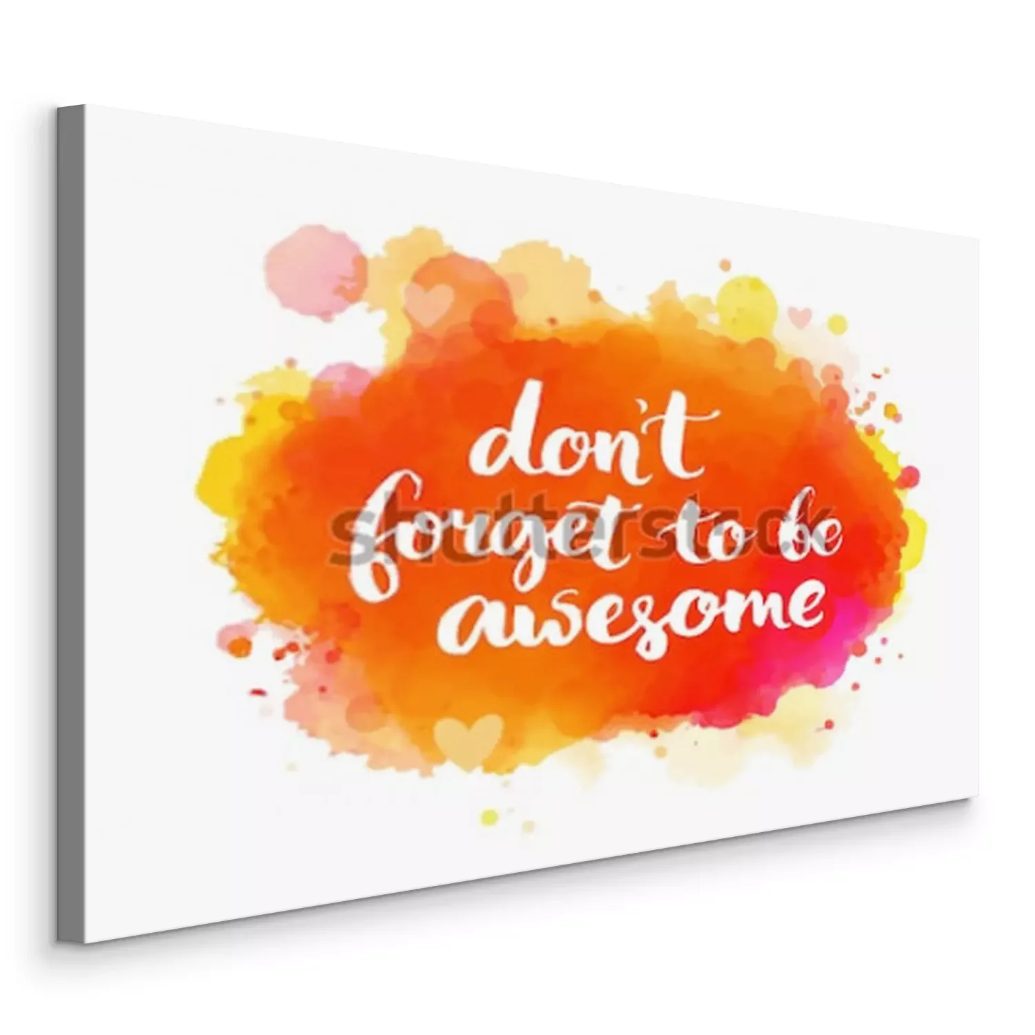 Canvas Vergeet niet geweldig te zijn. Inspirerend citaat, artistiek vectorkalligrafieontwerp. Kleurrijke verfvlek met belettering. Typografische kunst voor muurdecoratie, kaarten en sociale media-inhoud.