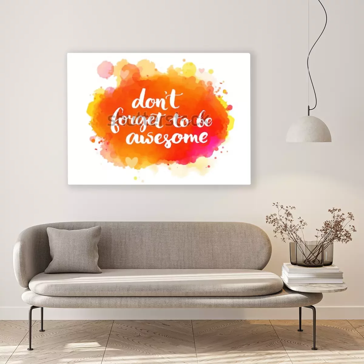 Canvas: Vergeet niet geweldig te zijn. Inspirerend citaat, artistiek vectorkalligrafieontwerp. Kleurrijke verfvlek met belettering. Typografische kunst voor muurdecoratie, kaarten en sociale media-inhoud.