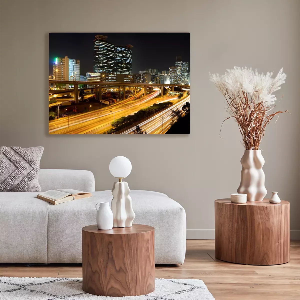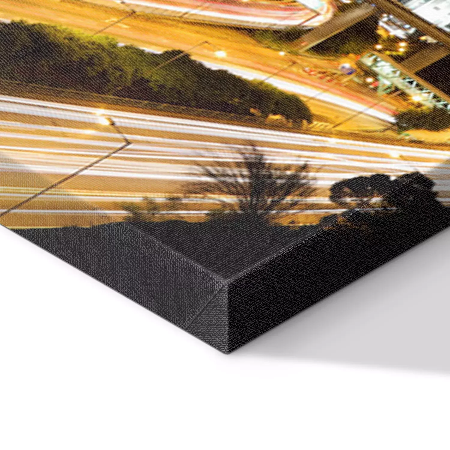De print wordt aangebracht op hoogwaardig canvas dat op een schildersweefgetouw (spieraam) wordt gespannen. Omdat de print de zijranden bedekt, hoeft het ontwerp niet met een extra kader te worden omlijst. Wij raden ook composities aan die uit meerdere foto's bestaan en zo een coherente compositie vormen.
