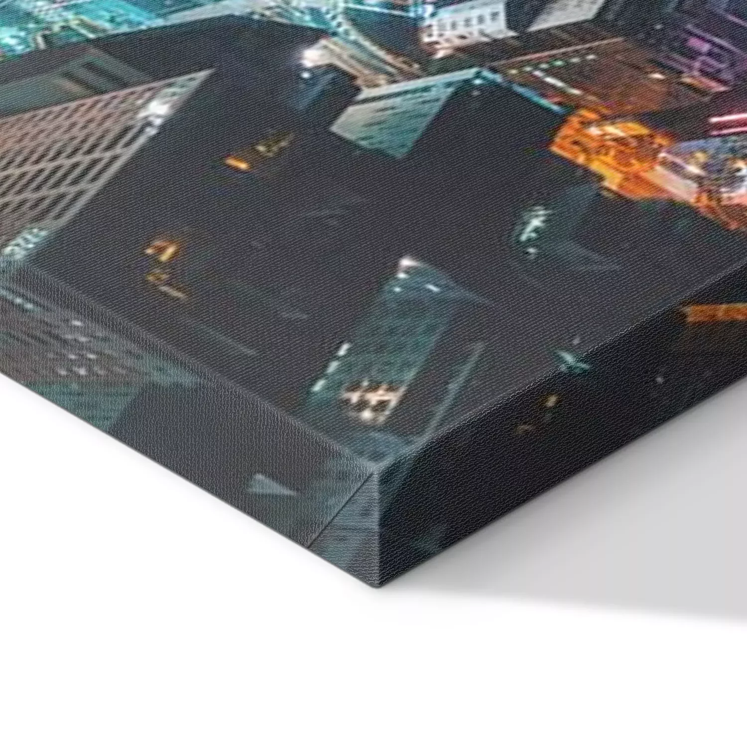De print wordt aangebracht op hoogwaardig canvas dat op een schildersweefgetouw (spieraam) wordt gespannen. Omdat de print de zijranden bedekt, hoeft het ontwerp niet met een extra kader te worden omlijst. Wij raden ook composities aan die uit meerdere foto's bestaan en zo een coherente compositie vormen.