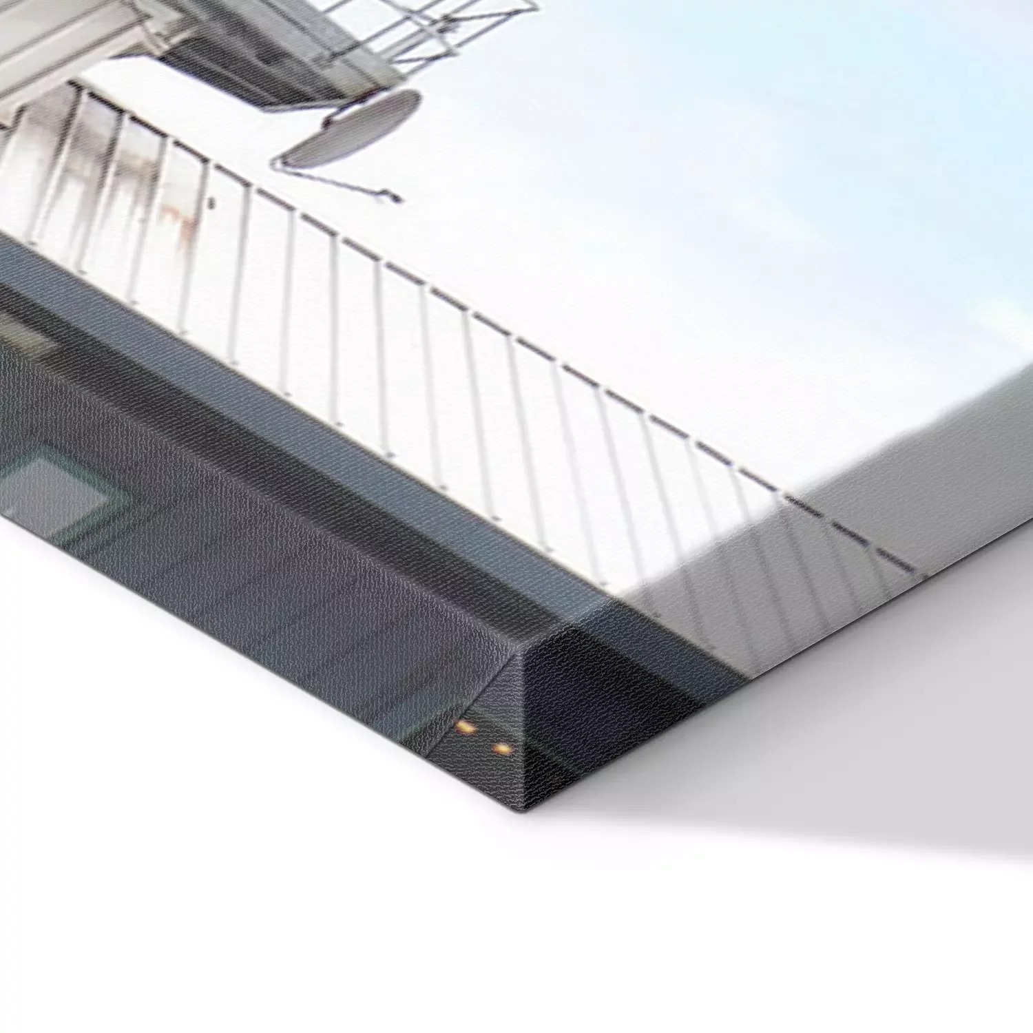 De print wordt aangebracht op hoogwaardig canvas dat op een schildersweefgetouw (spieraam) wordt gespannen. Omdat de print de zijranden bedekt, hoeft het ontwerp niet met een extra kader te worden omlijst. Wij raden ook composities aan die uit meerdere foto's bestaan en zo een coherente compositie vormen.
