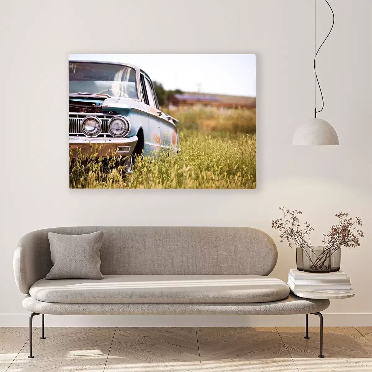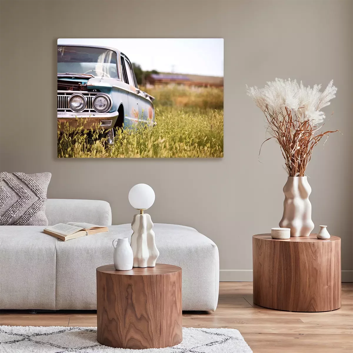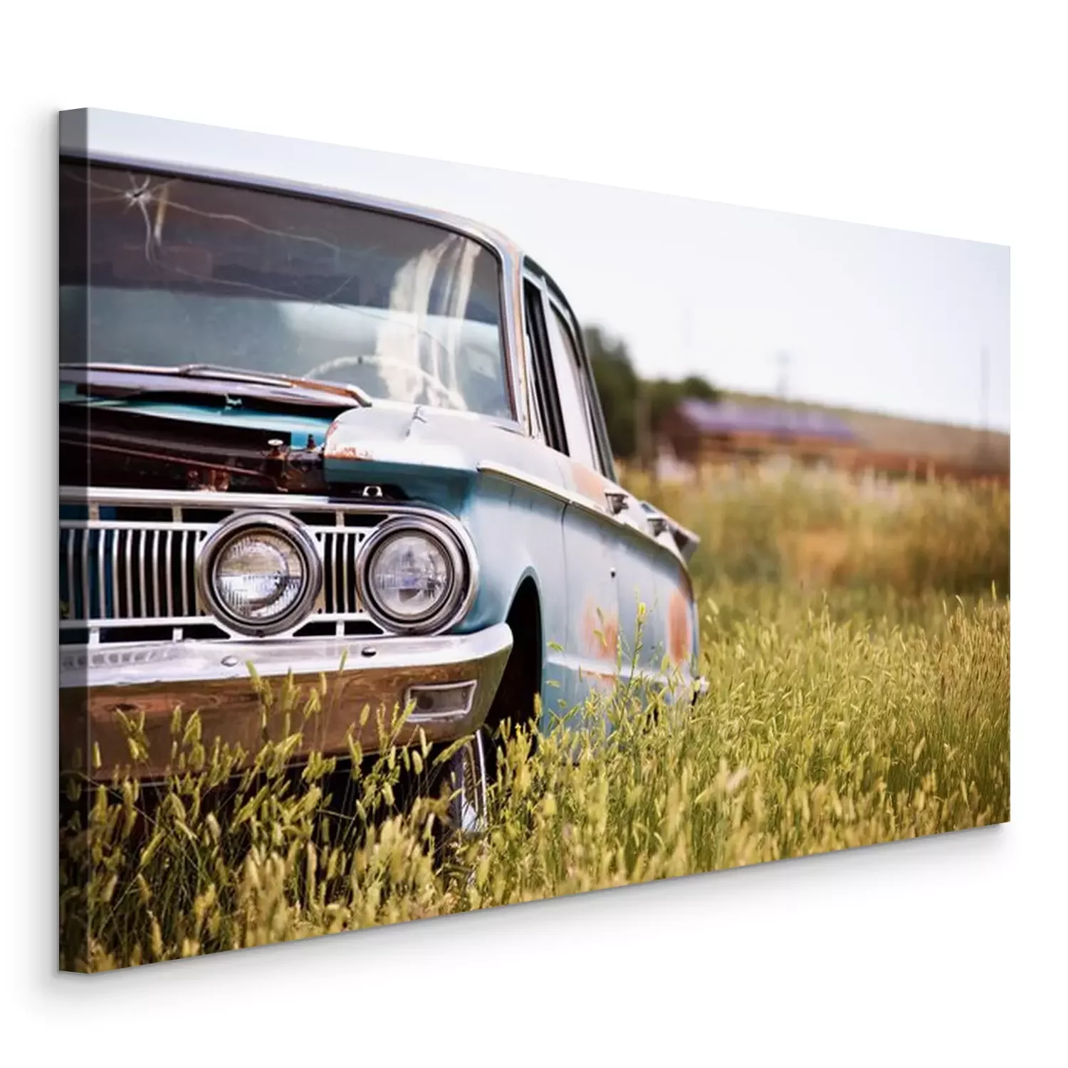 Canvas: verlaten klassieke auto in een veld in landelijke Wyoming