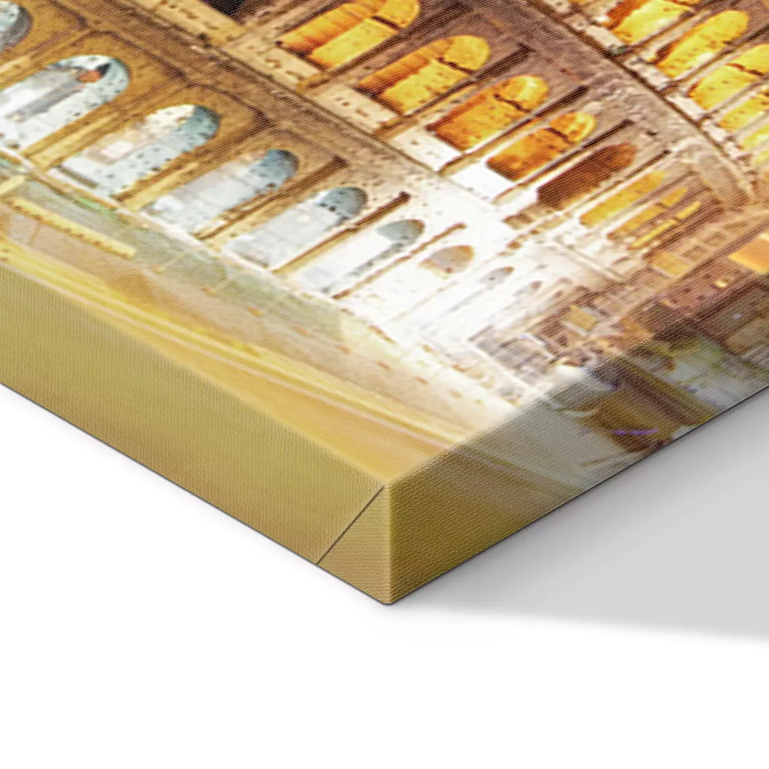 De print wordt aangebracht op hoogwaardig canvas dat op een schildersweefgetouw (spieraam) wordt gespannen. Omdat de print de zijranden bedekt, hoeft het ontwerp niet met een extra kader te worden omlijst. Wij raden ook composities aan die uit meerdere foto's bestaan en zo een coherente compositie vormen.