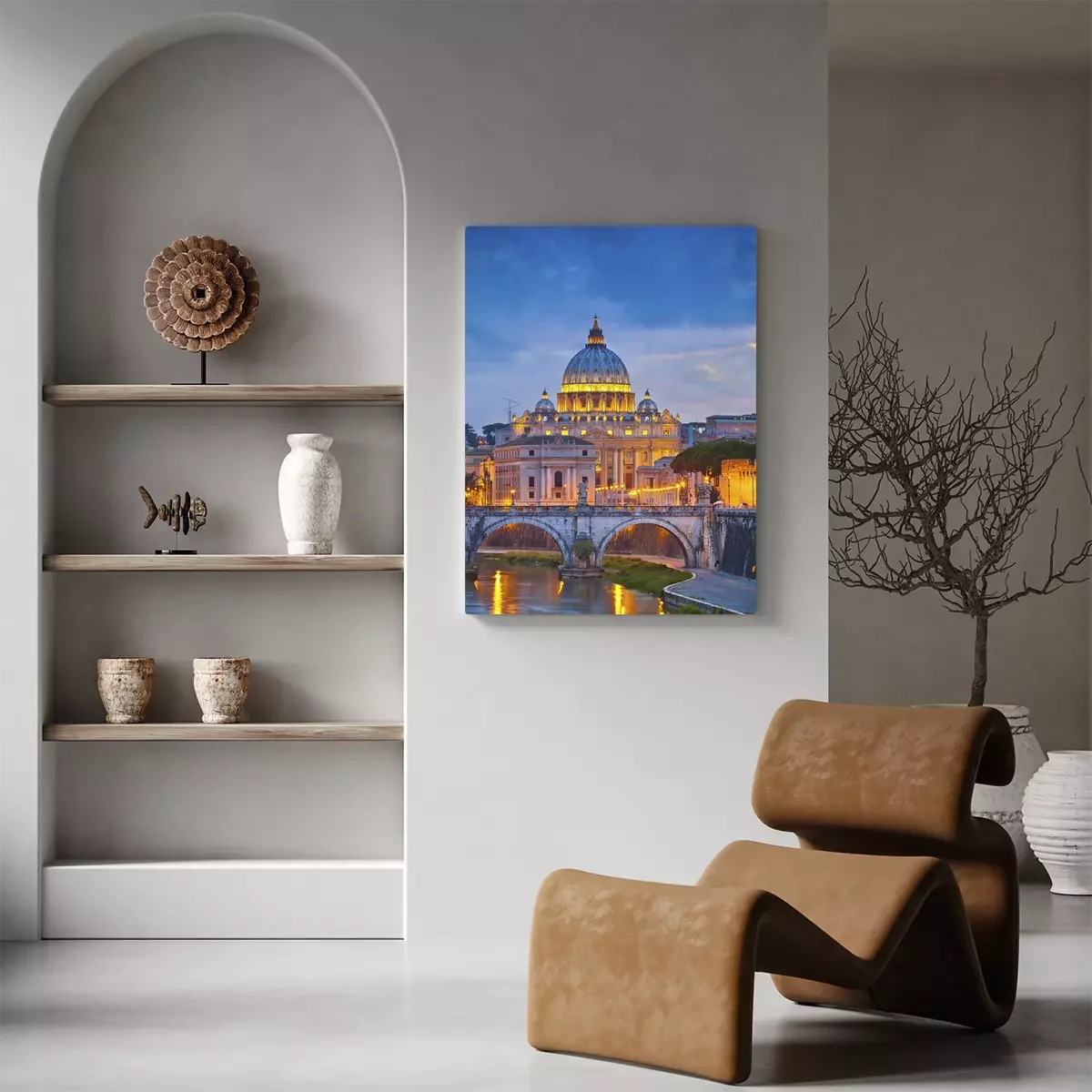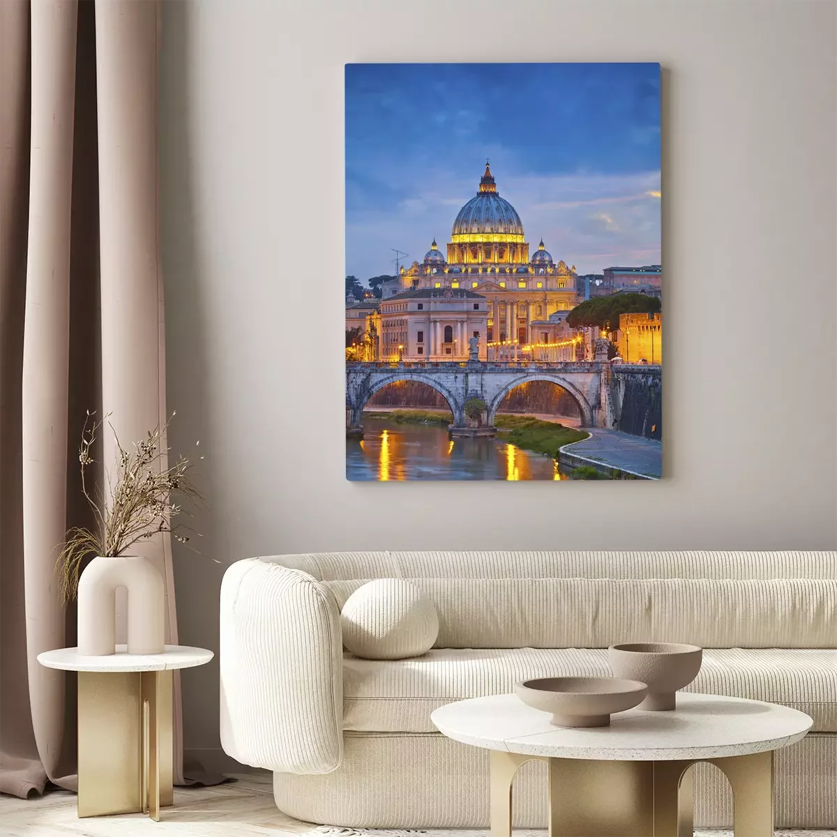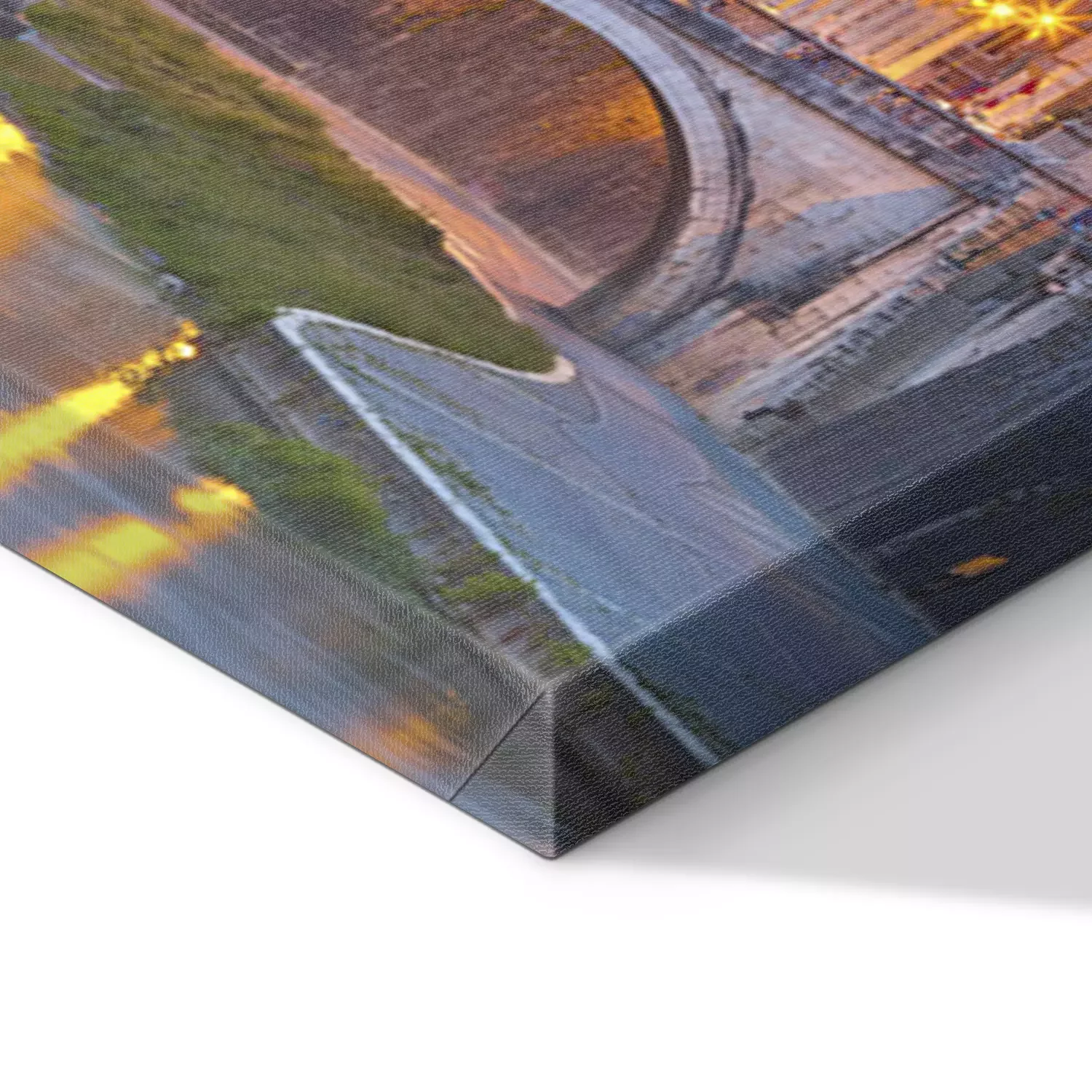 De print wordt aangebracht op hoogwaardig canvas dat op een schildersweefgetouw (spieraam) wordt gespannen. Omdat de print de zijranden bedekt, hoeft het ontwerp niet met een extra kader te worden omlijst. Wij raden ook composities aan die uit meerdere foto's bestaan en zo een coherente compositie vormen.