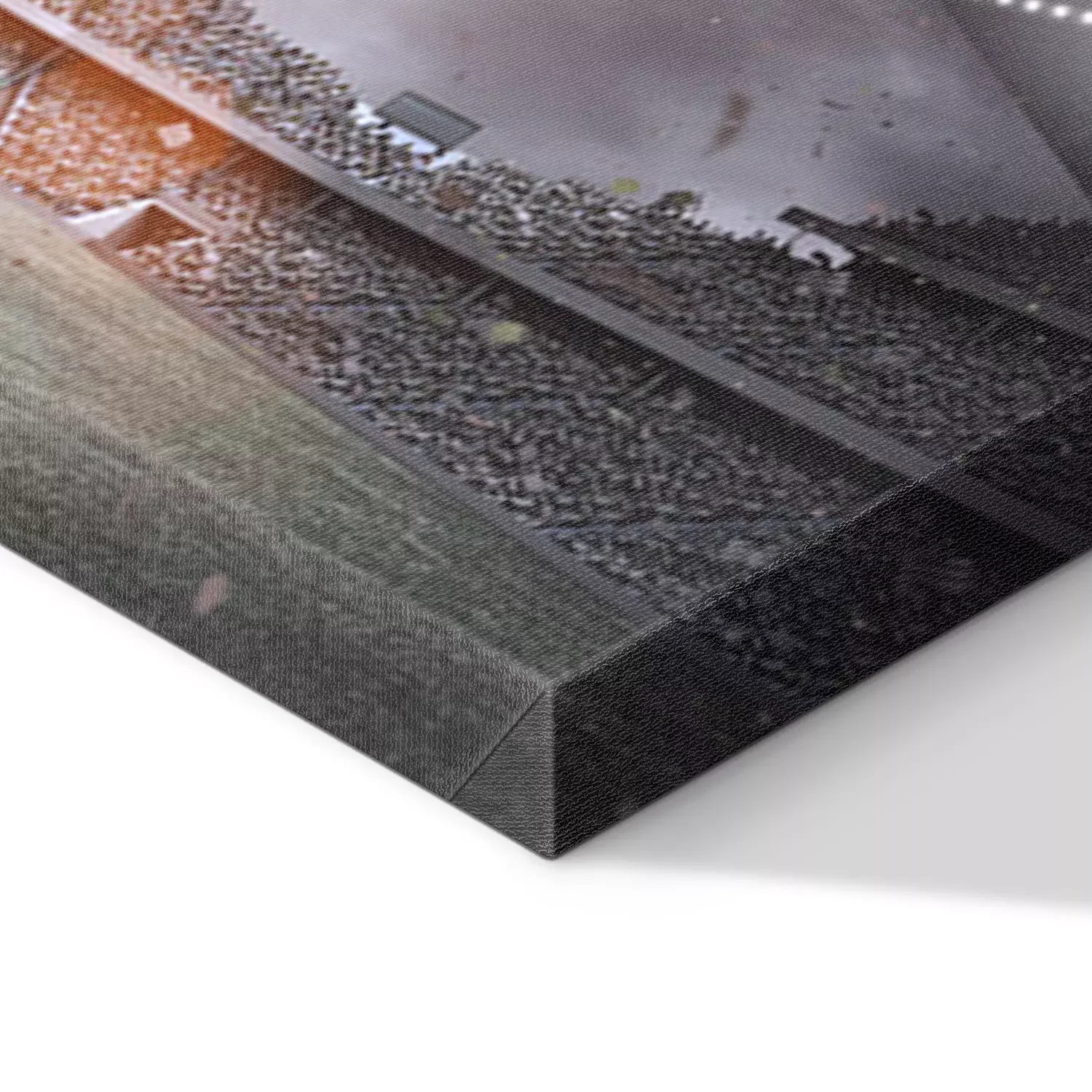 De print wordt aangebracht op hoogwaardig canvas dat op een schildersweefgetouw (spieraam) wordt gespannen. Omdat de print de zijranden bedekt, hoeft het ontwerp niet met een extra kader te worden omlijst. Wij raden ook composities aan die uit meerdere foto's bestaan en zo een coherente compositie vormen.