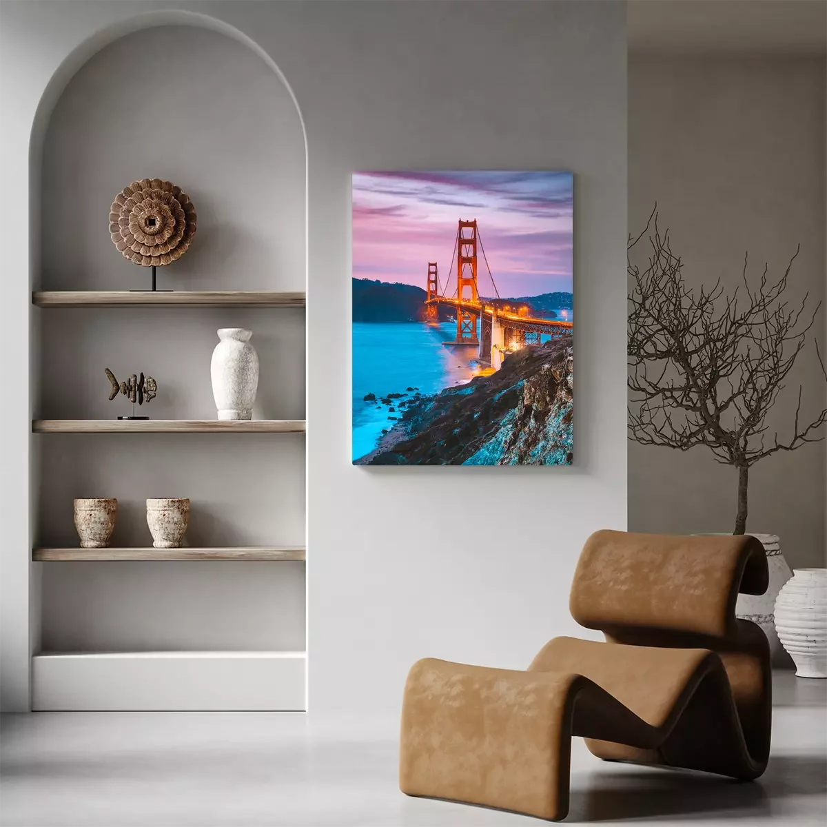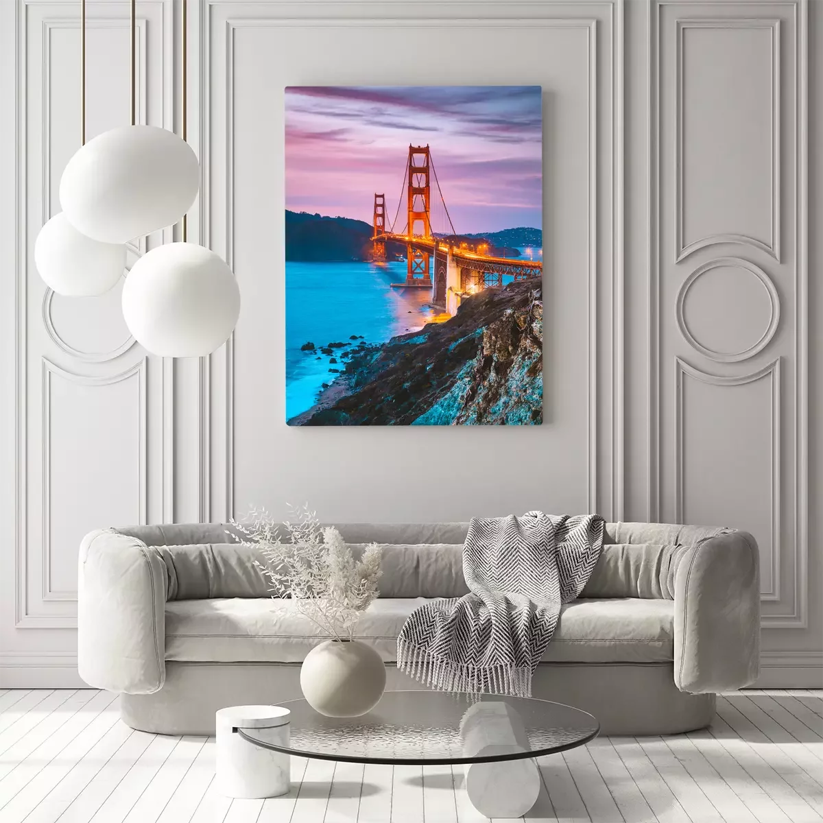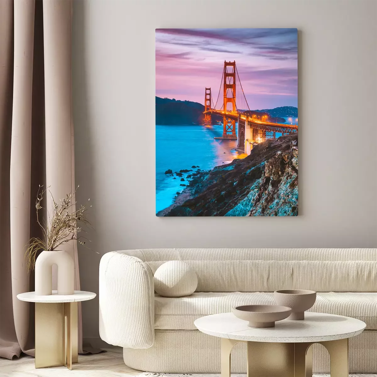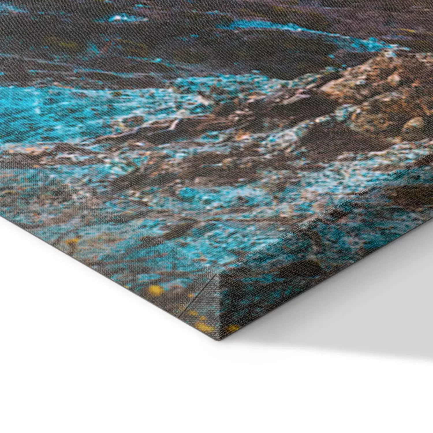 De print wordt aangebracht op hoogwaardig canvas dat op een schildersweefgetouw (spieraam) wordt gespannen. Omdat de print de zijranden bedekt, hoeft het ontwerp niet met een extra kader te worden omlijst. Wij raden ook composities aan die uit meerdere foto's bestaan en zo een coherente compositie vormen.