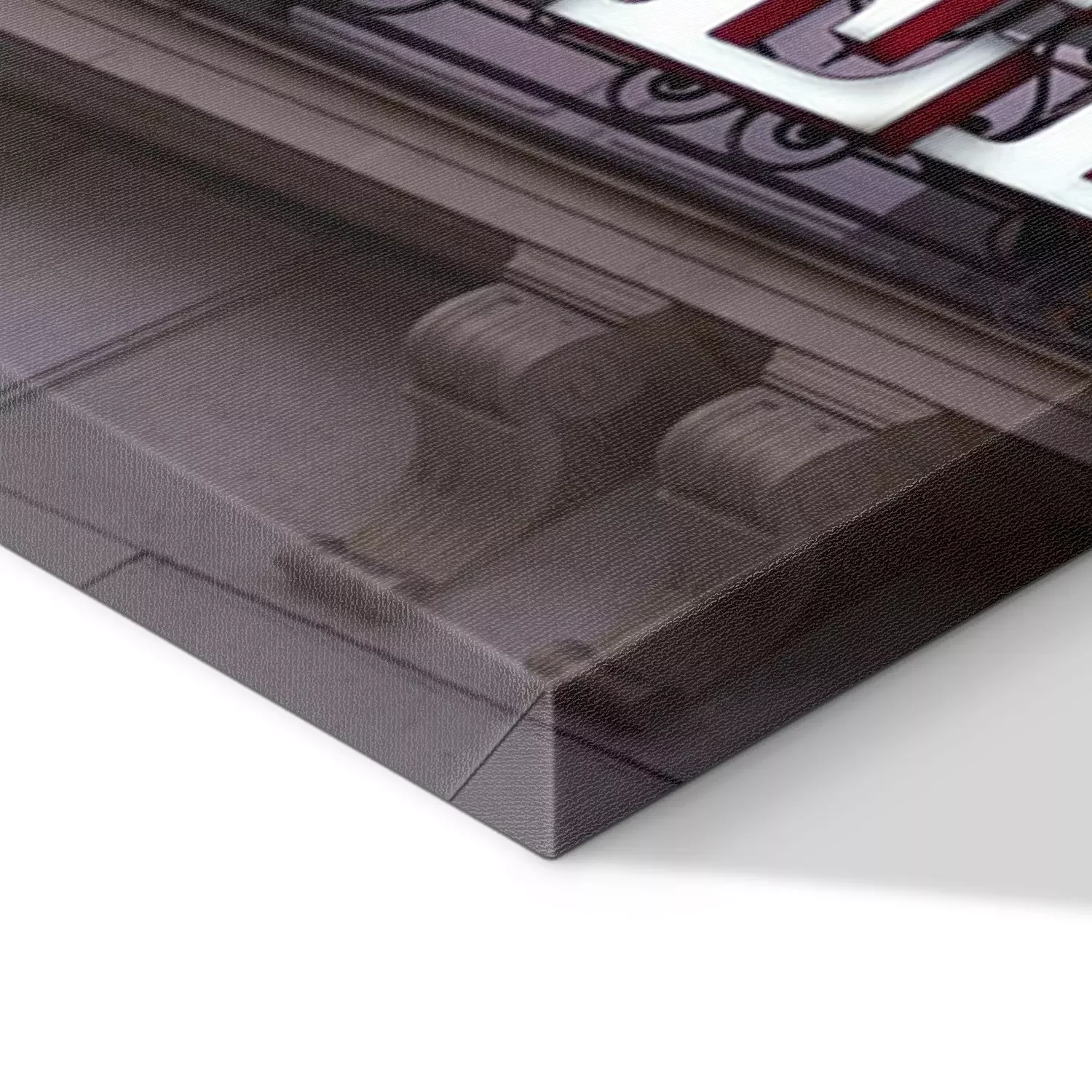 De print wordt aangebracht op hoogwaardig canvas dat op een schildersweefgetouw (spieraam) wordt gespannen. Omdat de print de zijranden bedekt, hoeft het ontwerp niet met een extra kader te worden omlijst. Wij raden ook composities aan die uit meerdere foto's bestaan en zo een coherente compositie vormen.