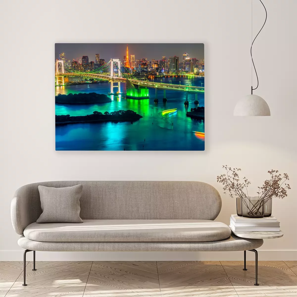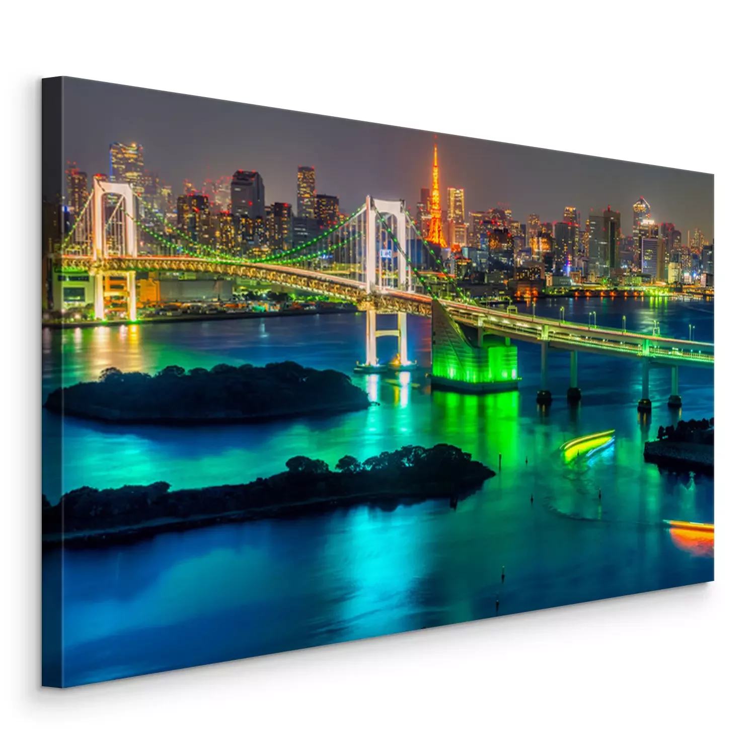 Canvas: Verlichte stad Tokio 's nachts