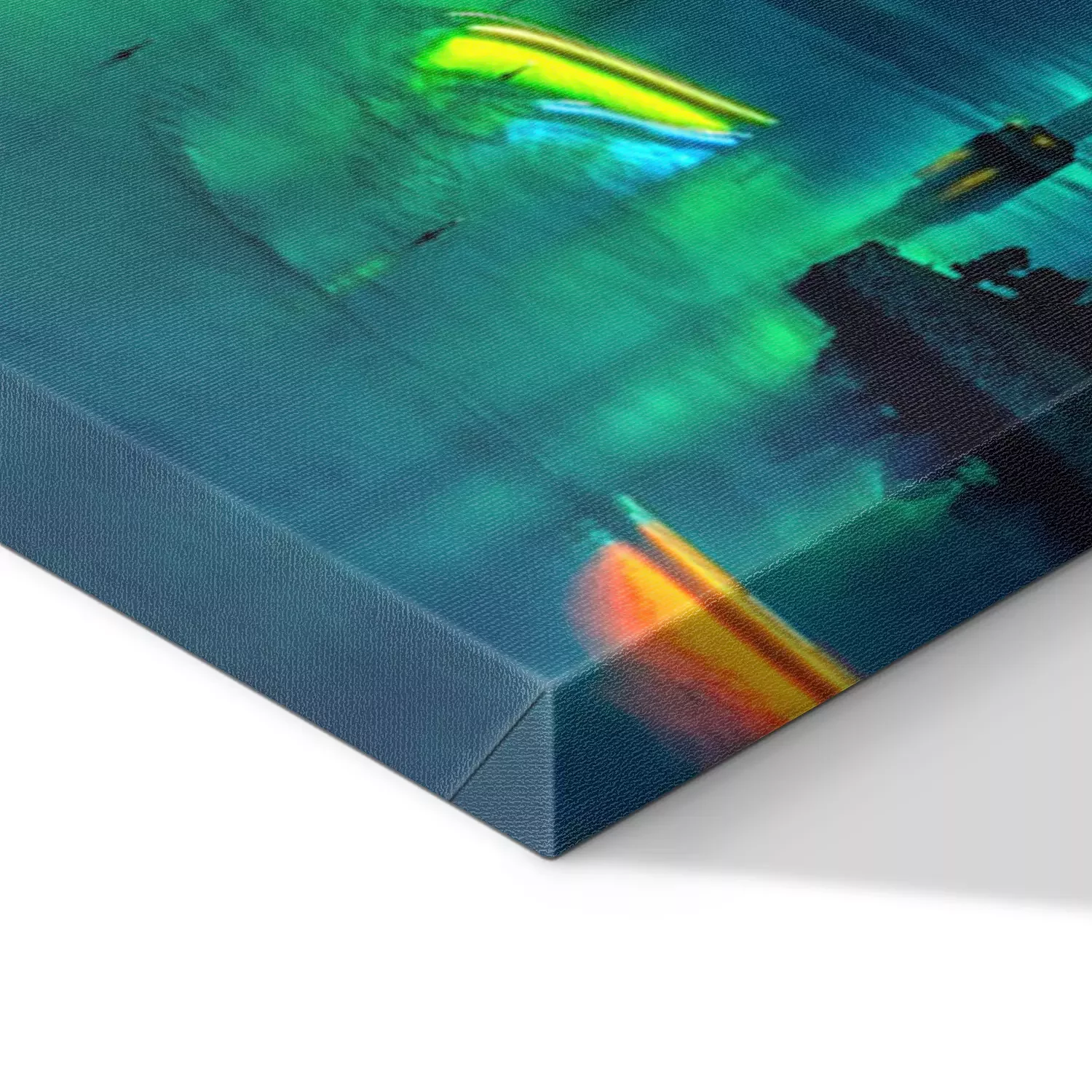 De print wordt aangebracht op hoogwaardig canvas dat op een schildersweefgetouw (spieraam) wordt gespannen. Omdat de print de zijranden bedekt, hoeft het ontwerp niet met een extra kader te worden omlijst. Wij raden ook composities aan die uit meerdere foto's bestaan en zo een coherente compositie vormen.