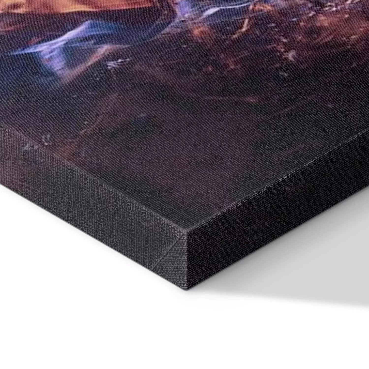 De print wordt aangebracht op hoogwaardig canvas dat op een schildersweefgetouw (spieraam) wordt gespannen. Omdat de print de zijranden bedekt, hoeft het ontwerp niet met een extra kader te worden omlijst. Wij raden ook composities aan die uit meerdere foto's bestaan en zo een coherente compositie vormen.