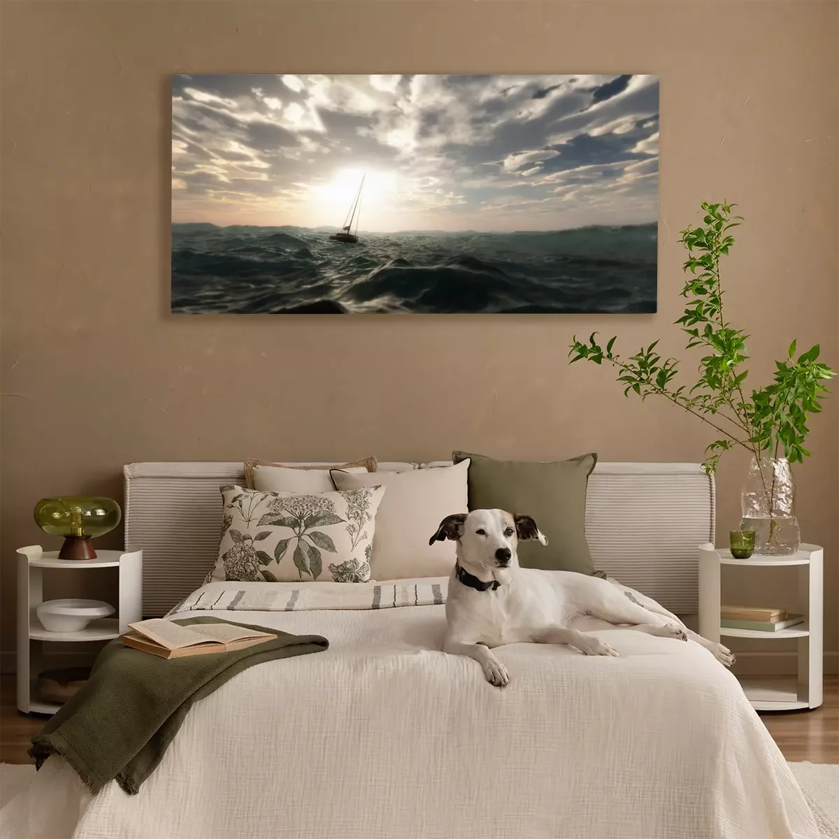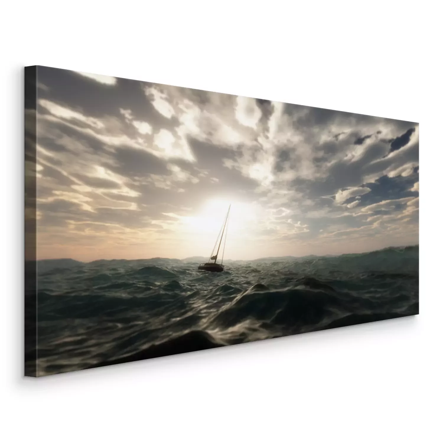 Canvas Verloren zeilboot in wilde stormachtige zee. Bewolkte hemel.