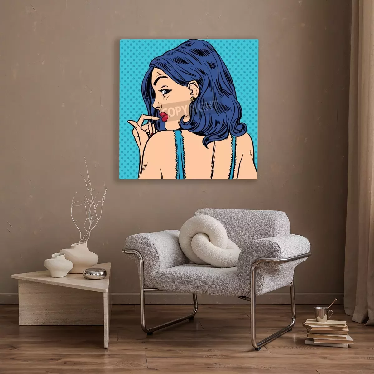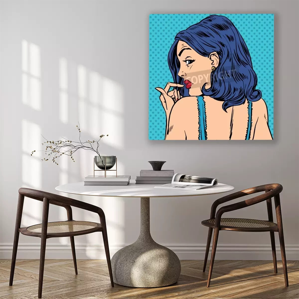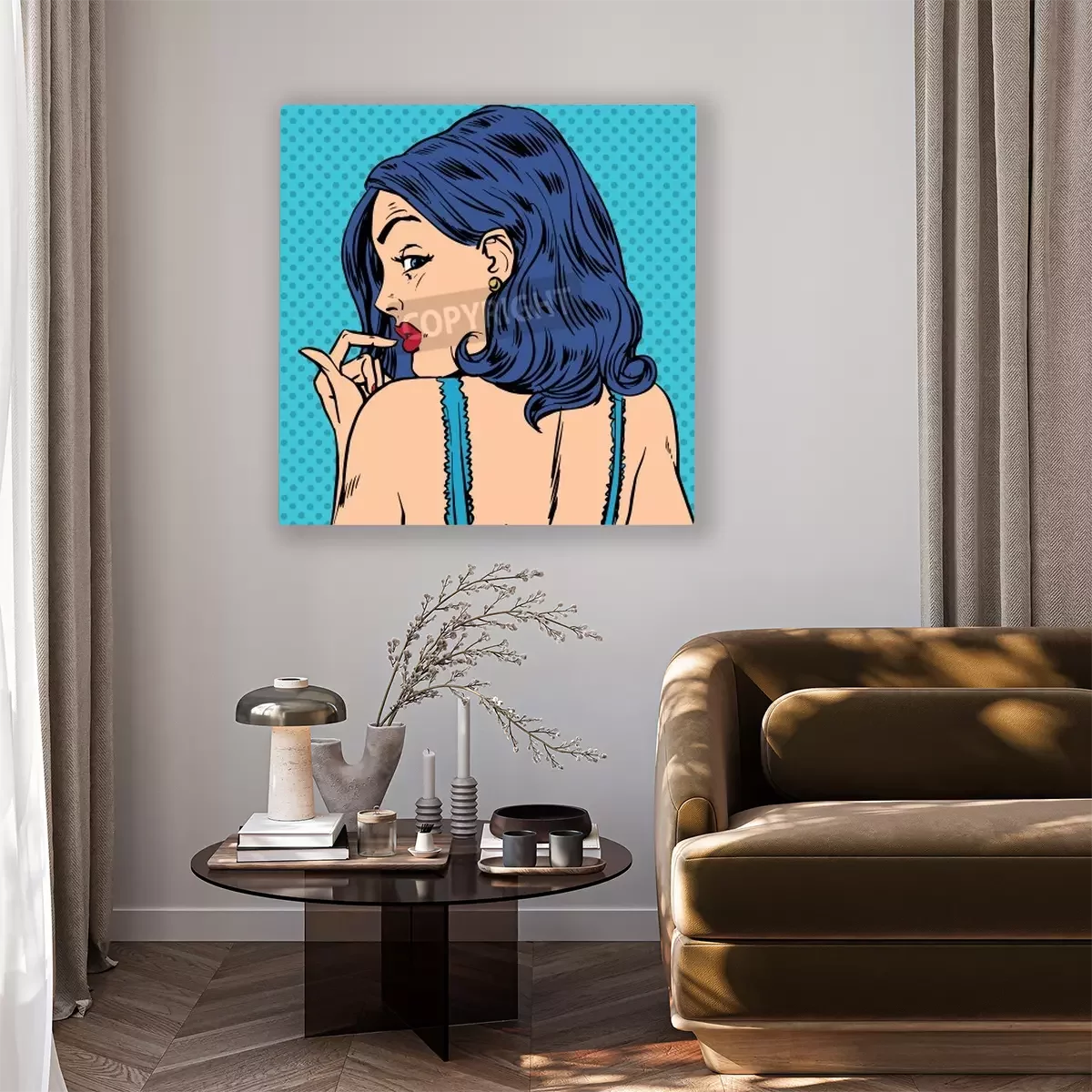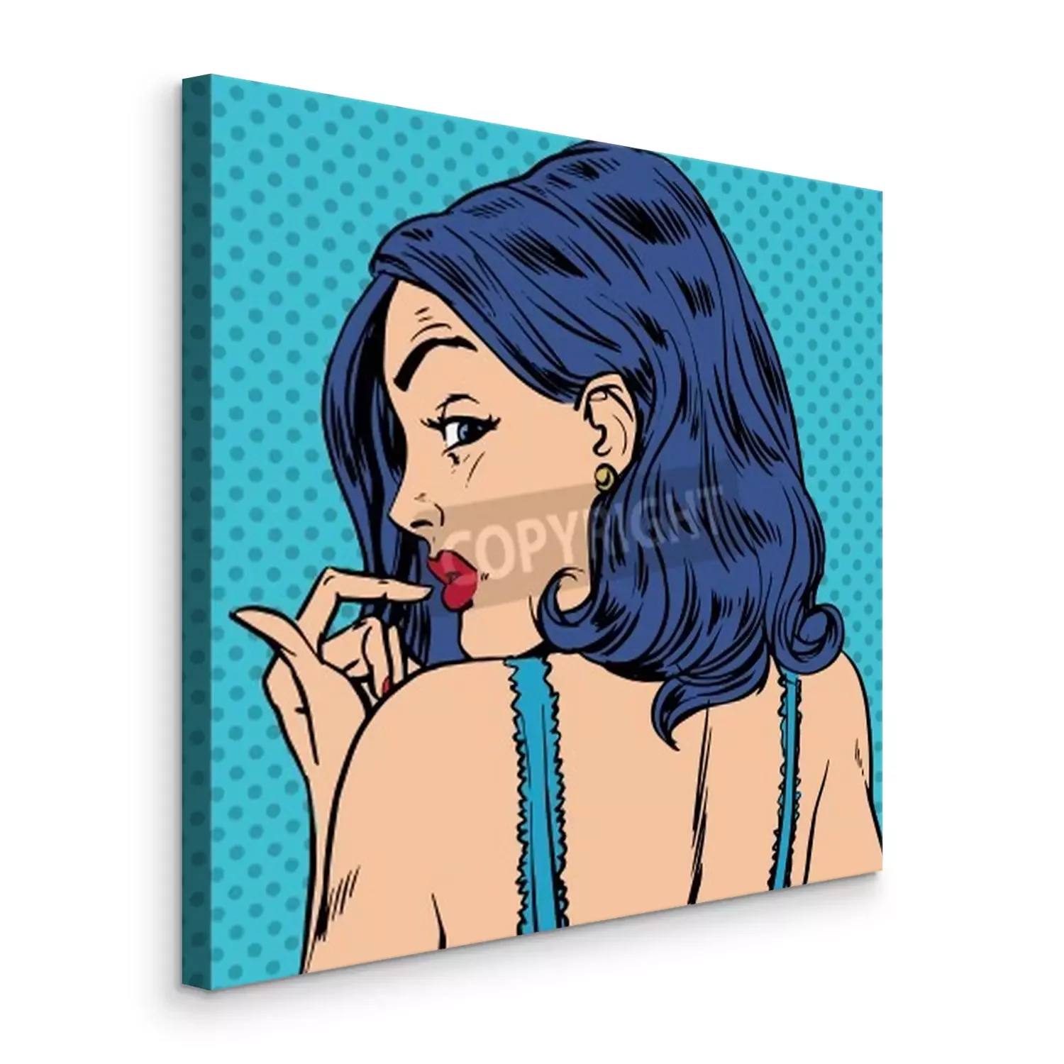Canvas: Verraste vrouw kijkt terug pop art comics retro-stijl Halftone. Imitatie van oude illustraties