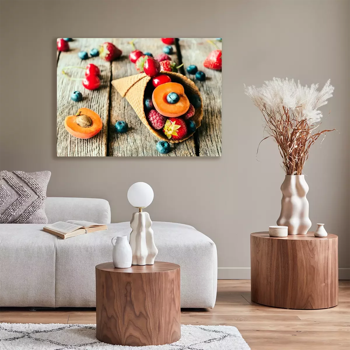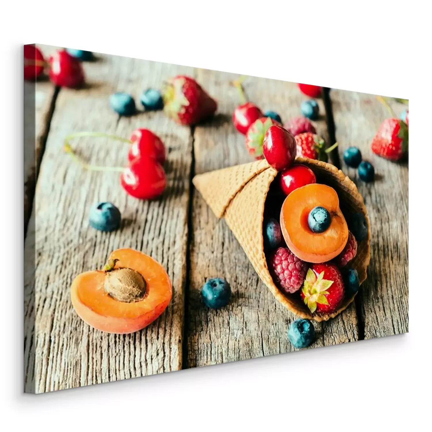 De print wordt aangebracht op hoogwaardig canvas dat op een schildersweefgetouw (spieraam) wordt gespannen. Omdat de print de zijranden bedekt, hoeft het ontwerp niet met een extra kader te worden omlijst. Wij raden ook composities aan die uit meerdere foto's bestaan en zo een coherente compositie vormen.