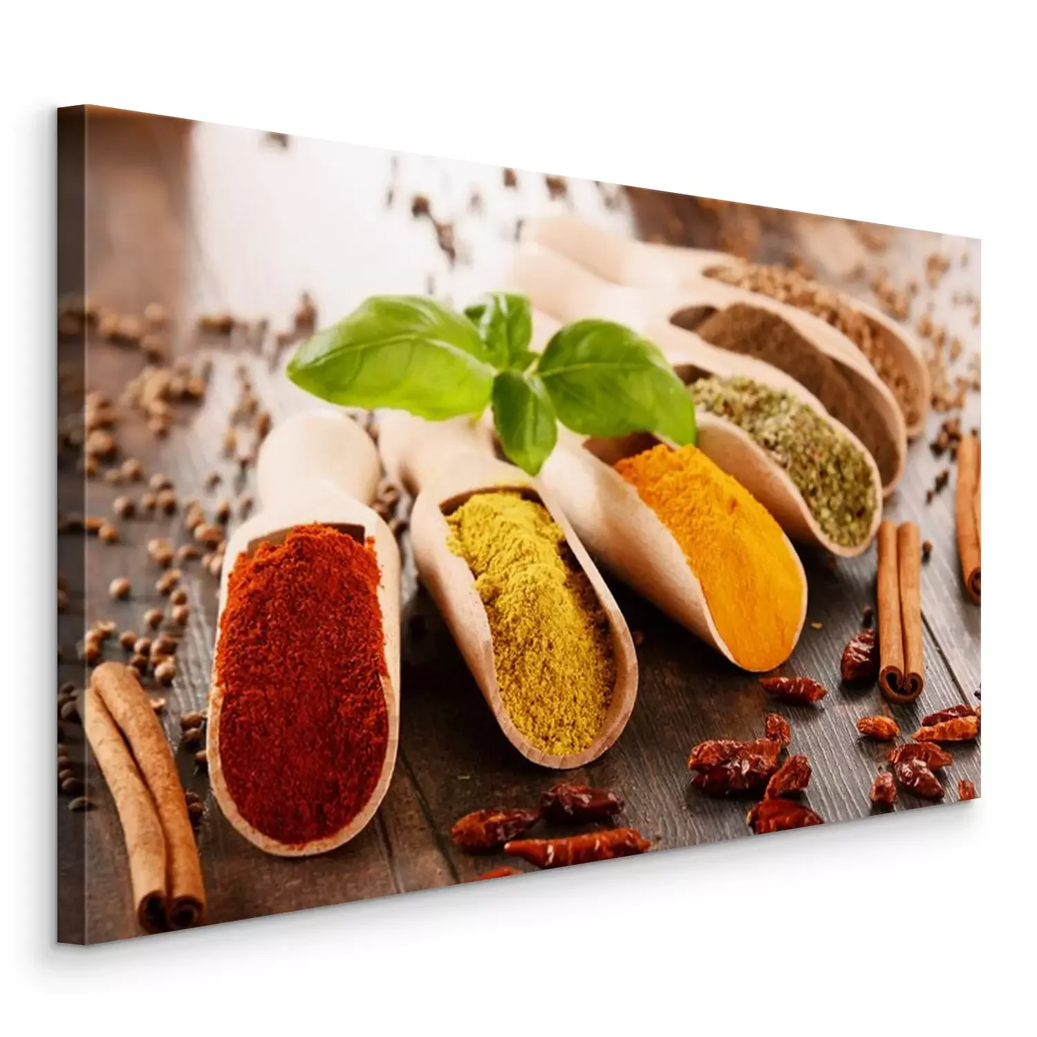 Canvas Verscheidenheid van kruiden op de keukentafel