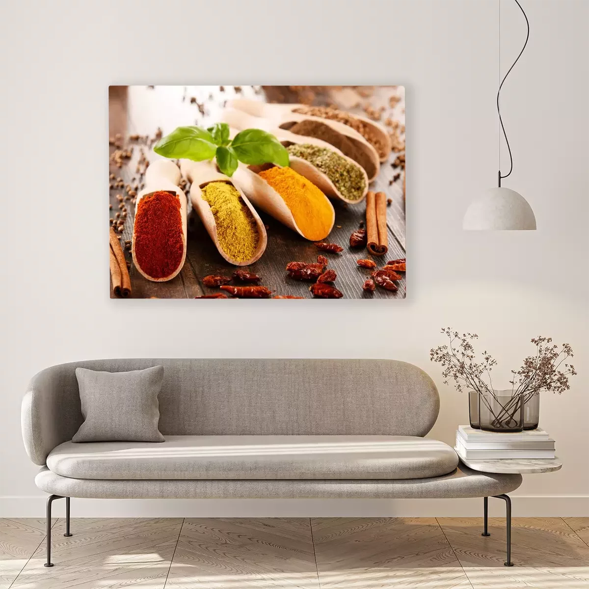 Canvas: Verscheidenheid van kruiden op de keukentafel