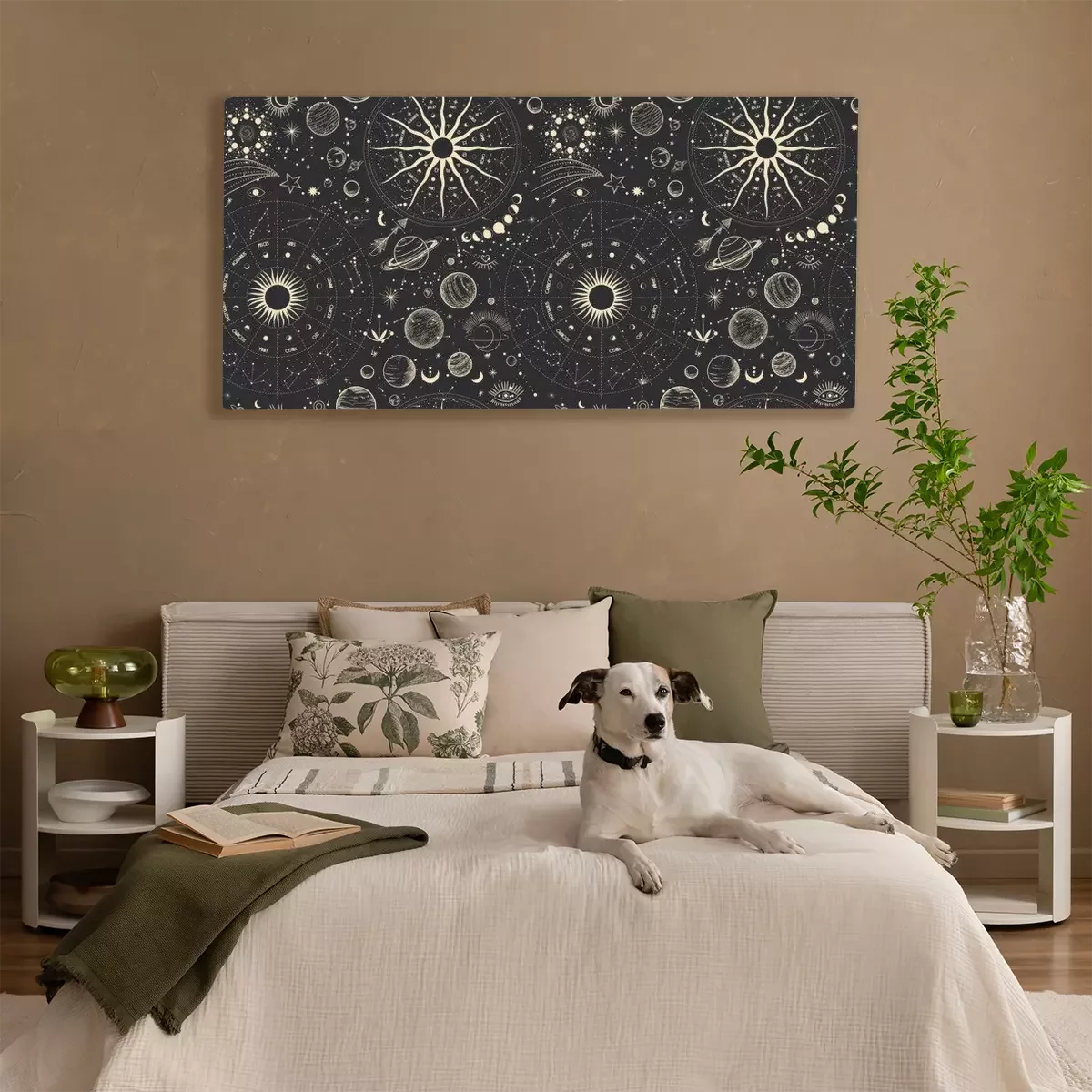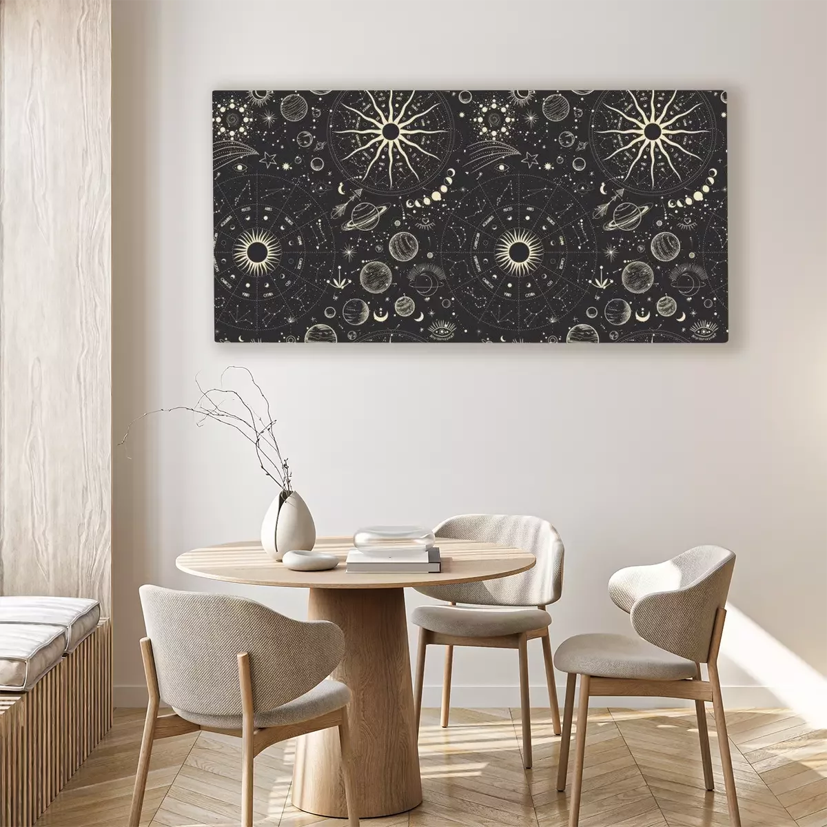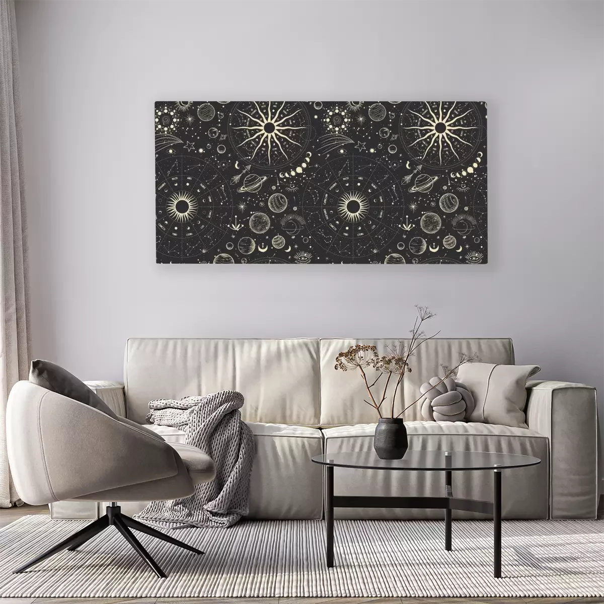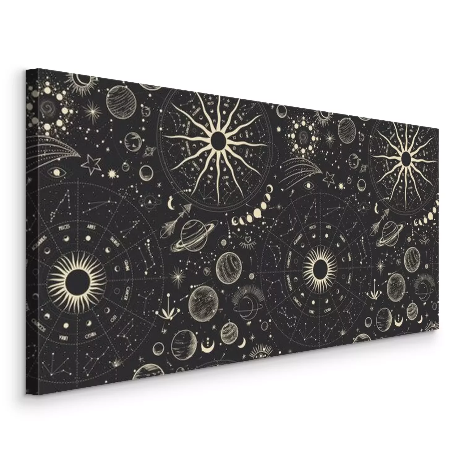 Canvas: Verschillende fasen van de maan in vintage stijl