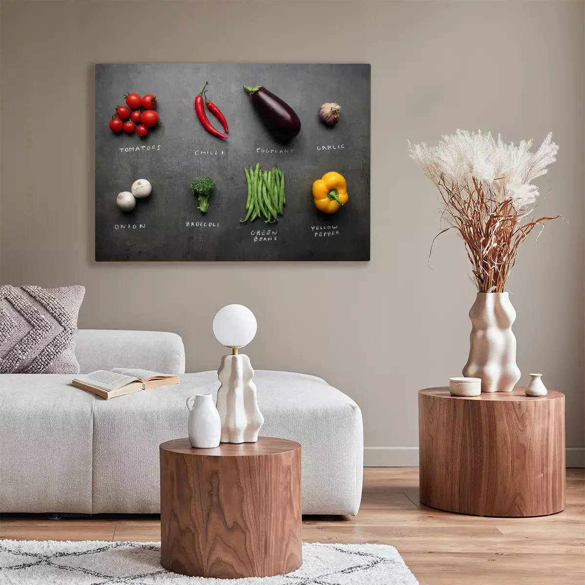 Canvas Verse groenten met krijtachtige borden op grijze keukentafel