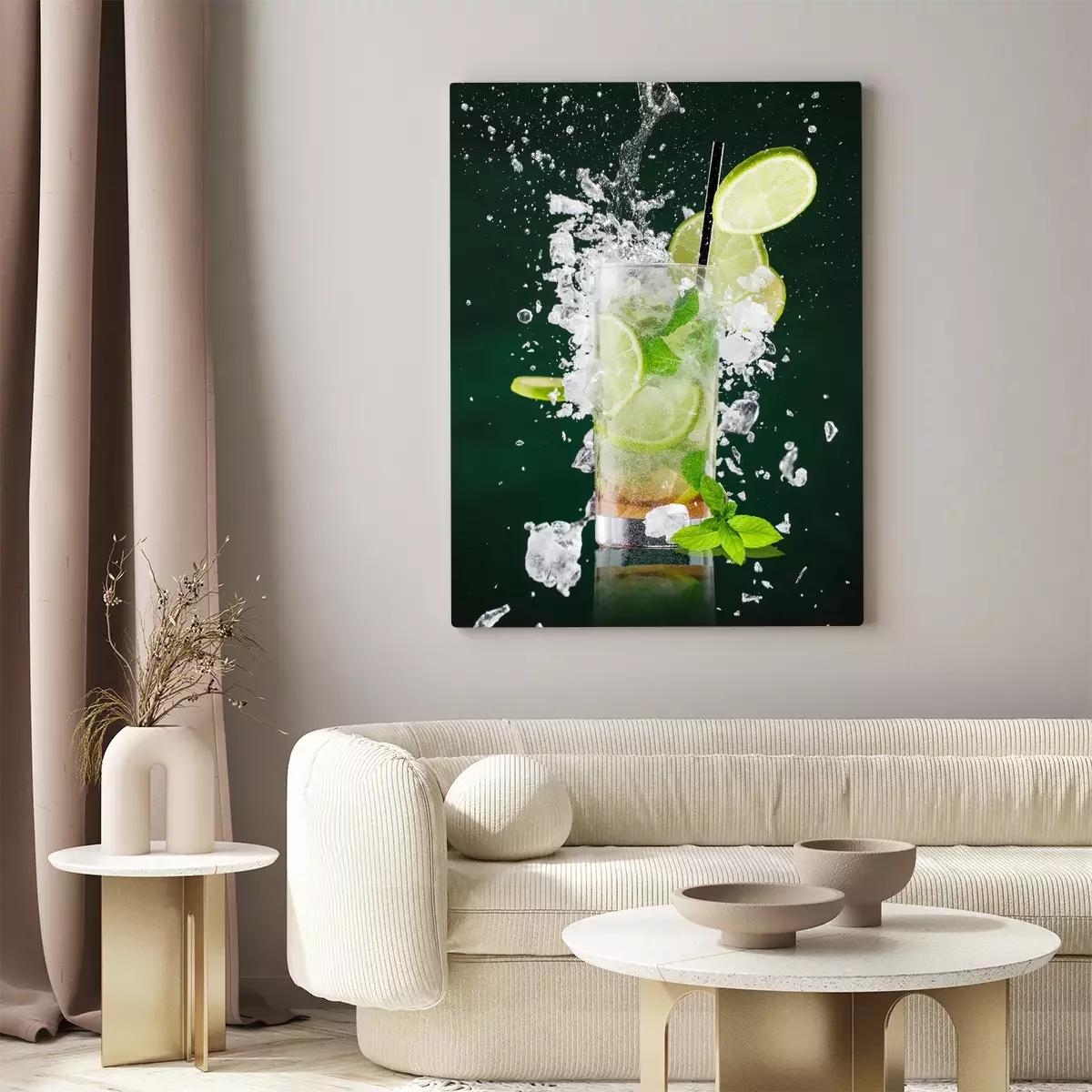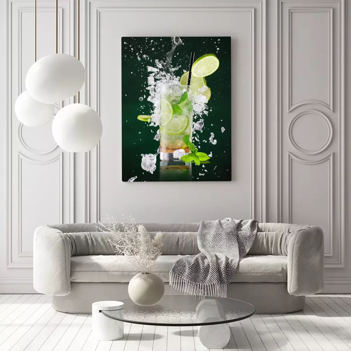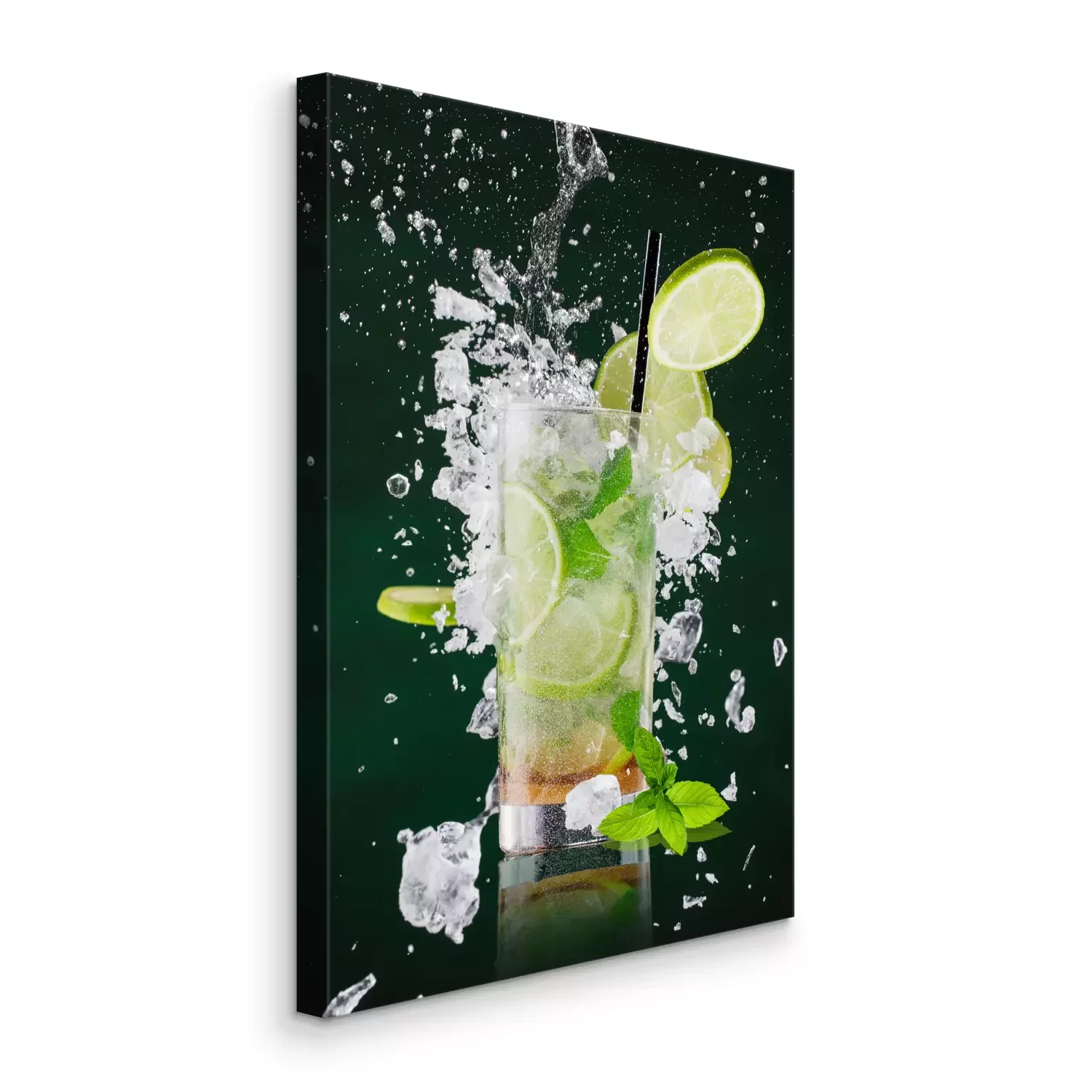 Canvas: Verse mojito drank met vloeibare plons en crushed ijs in bevriezen beweging