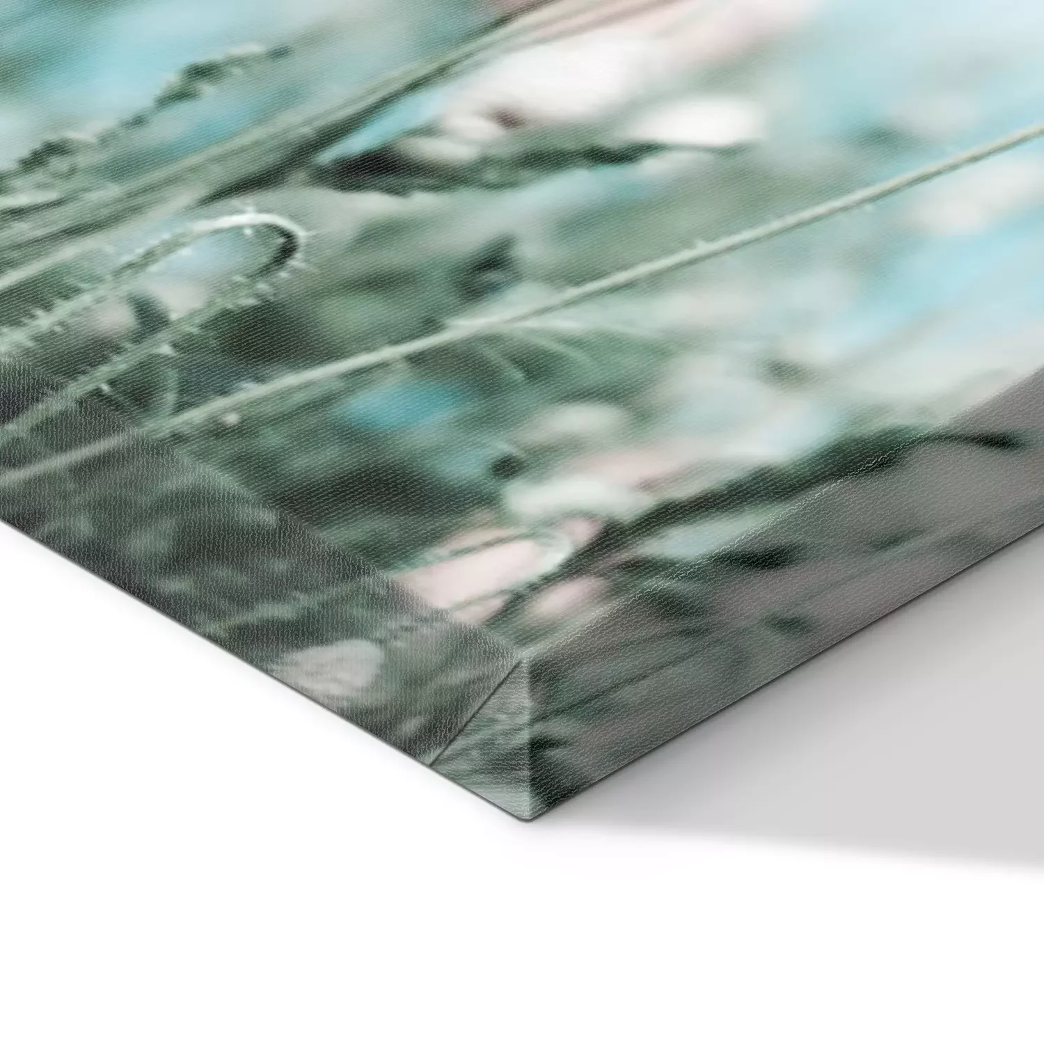 De print wordt aangebracht op hoogwaardig canvas dat op een schildersweefgetouw (spieraam) wordt gespannen. Omdat de print de zijranden bedekt, hoeft het ontwerp niet met een extra kader te worden omlijst. Wij raden ook composities aan die uit meerdere foto's bestaan en zo een coherente compositie vormen.