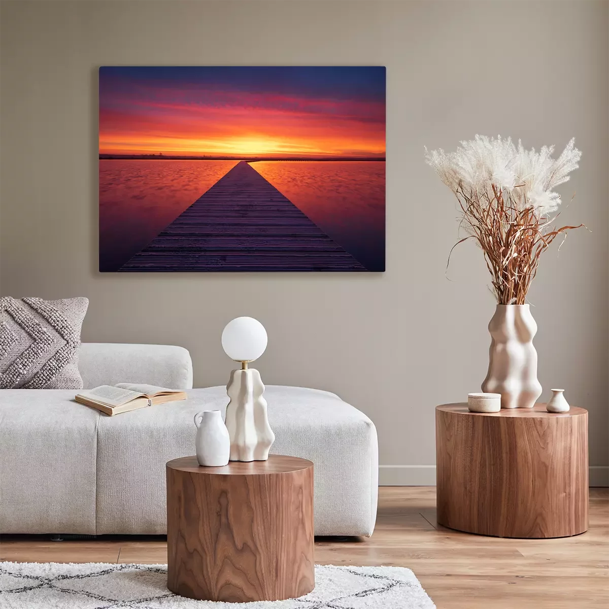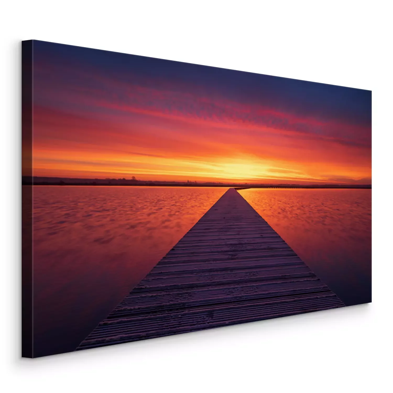 Canvas: Very colorful and tranquil dawn at a jetty in a lake. Groningen, Holland.