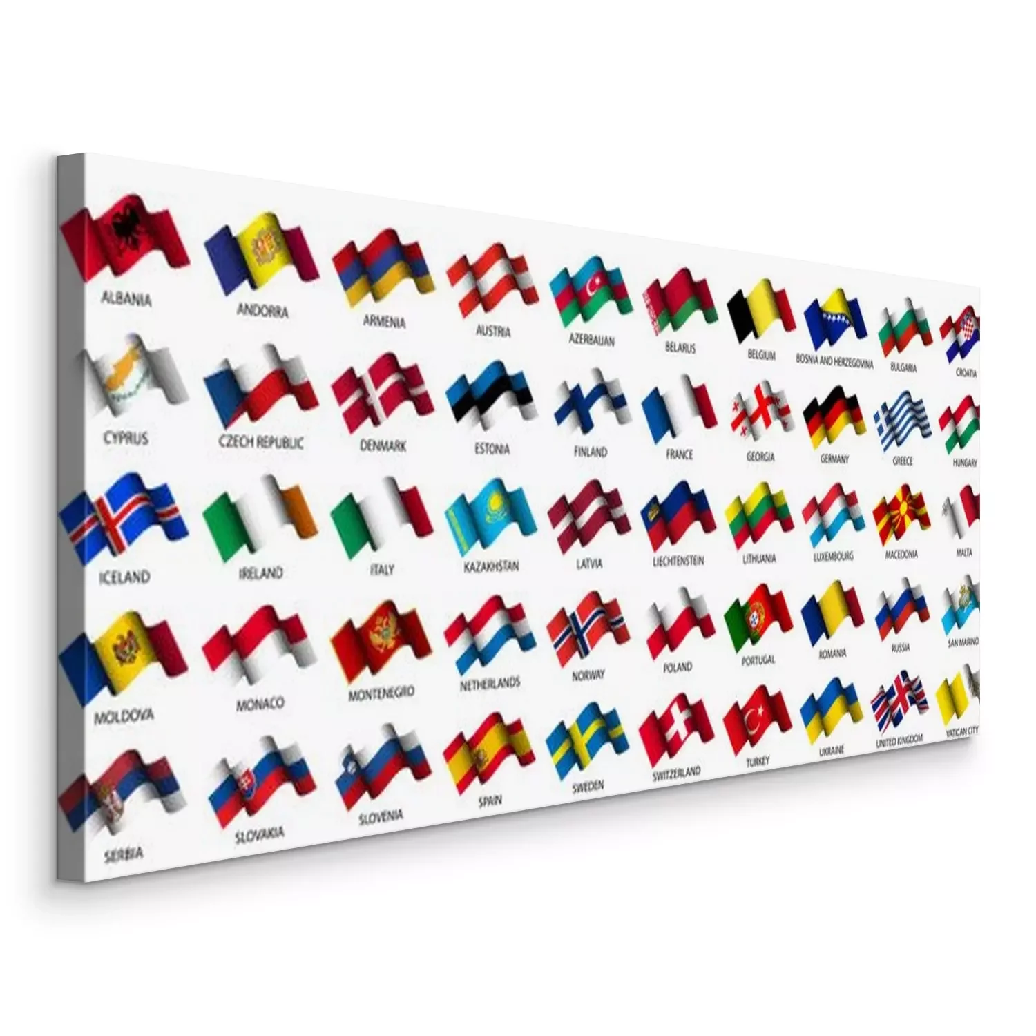 Canvas: verzameling van alle Europese vlaggen op een witte achtergrond