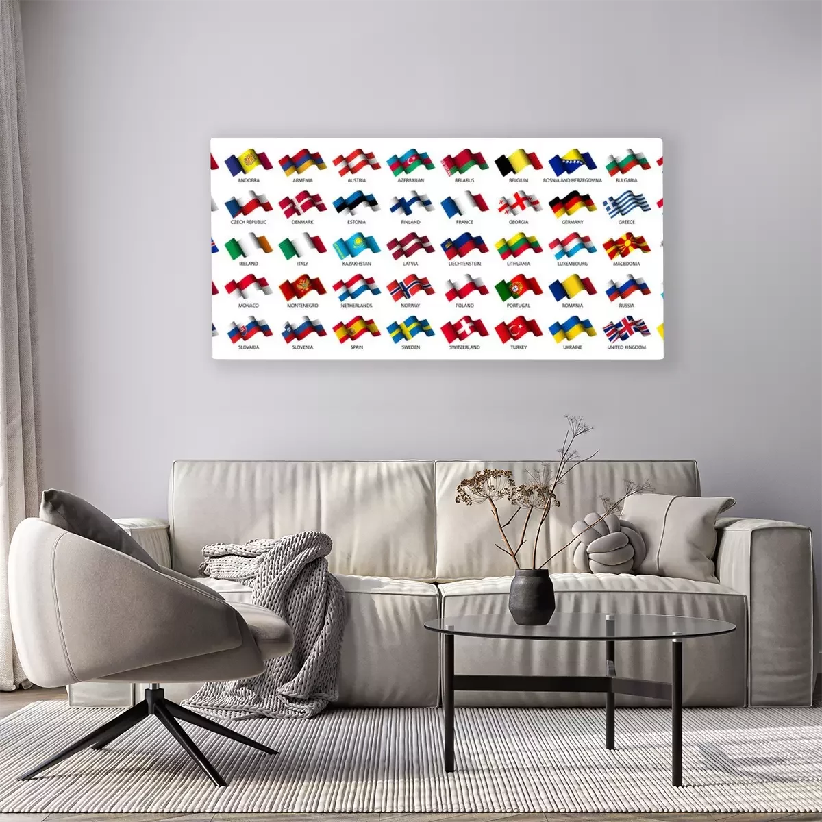 Canvas verzameling van alle Europese vlaggen op een witte achtergrond