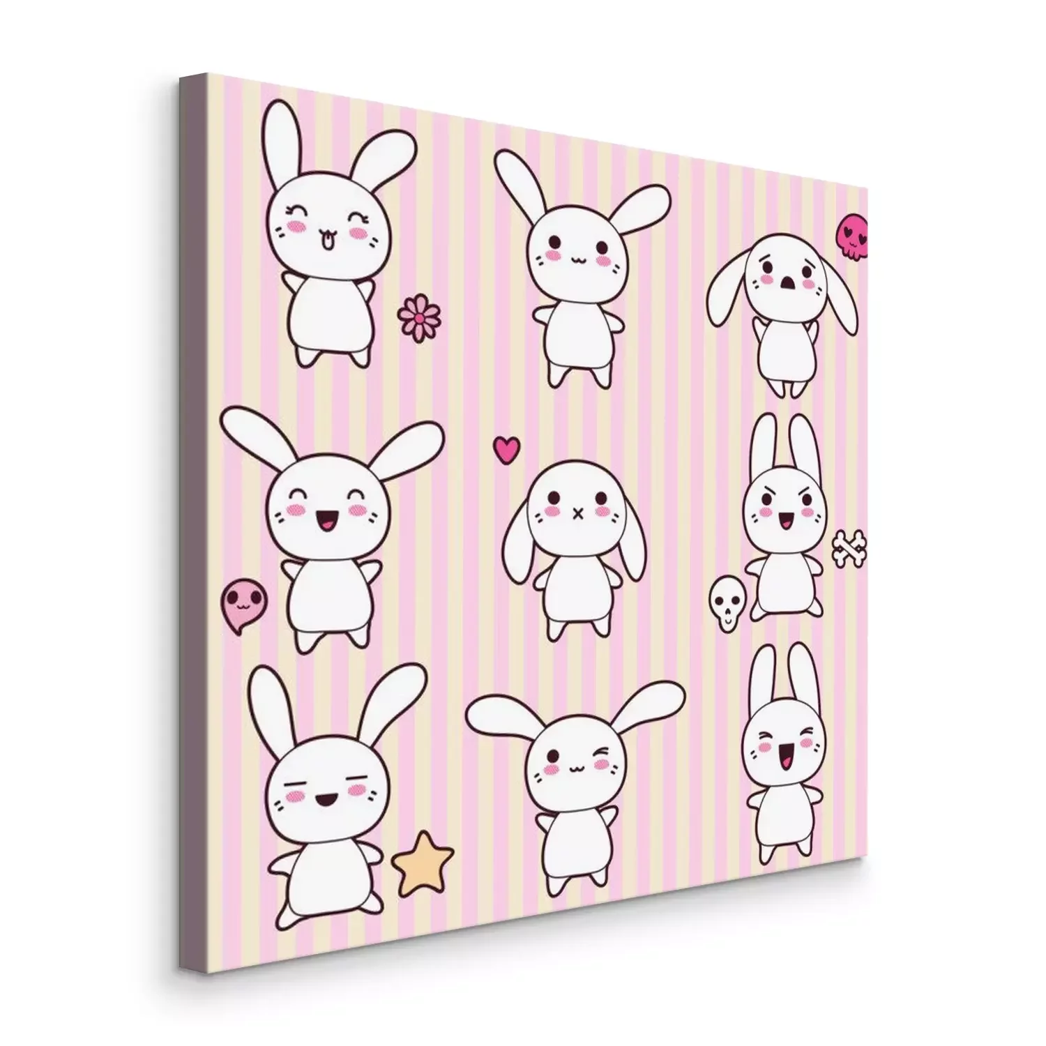 Canvas: Verzameling van grappige en leuke gelukkige kawaii konijnen.