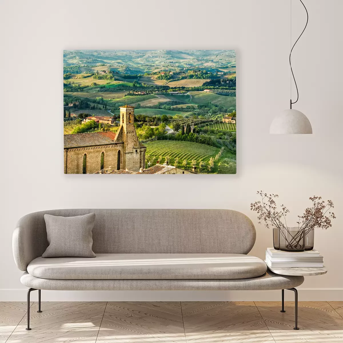 De print wordt aangebracht op hoogwaardig canvas dat op een schildersweefgetouw (spieraam) wordt gespannen. Omdat de print de zijranden bedekt, hoeft het ontwerp niet met een extra kader te worden omlijst. Wij raden ook composities aan die uit meerdere foto's bestaan en zo een coherente compositie vormen.