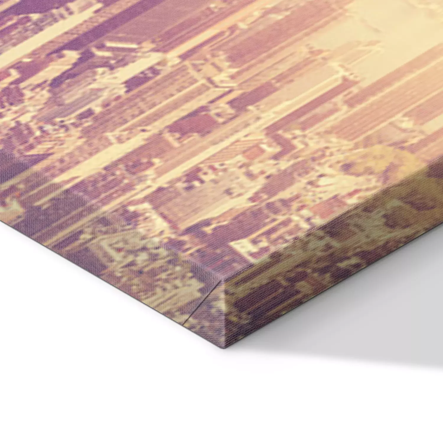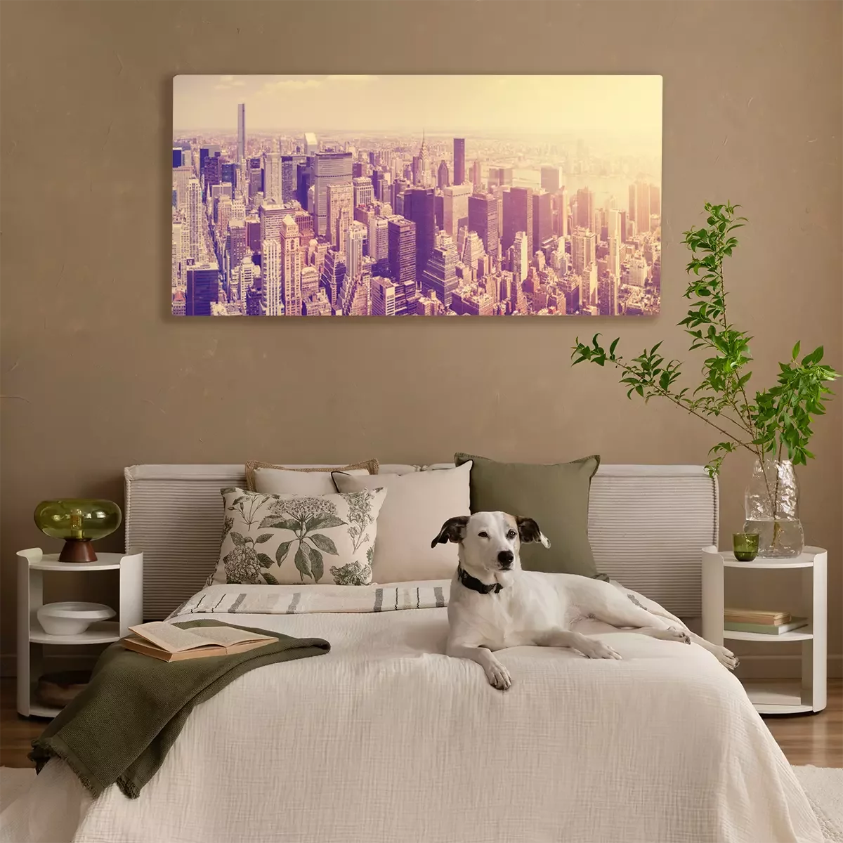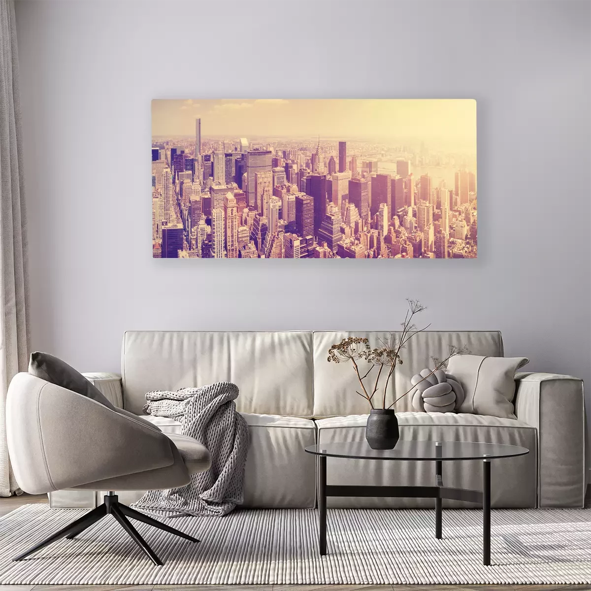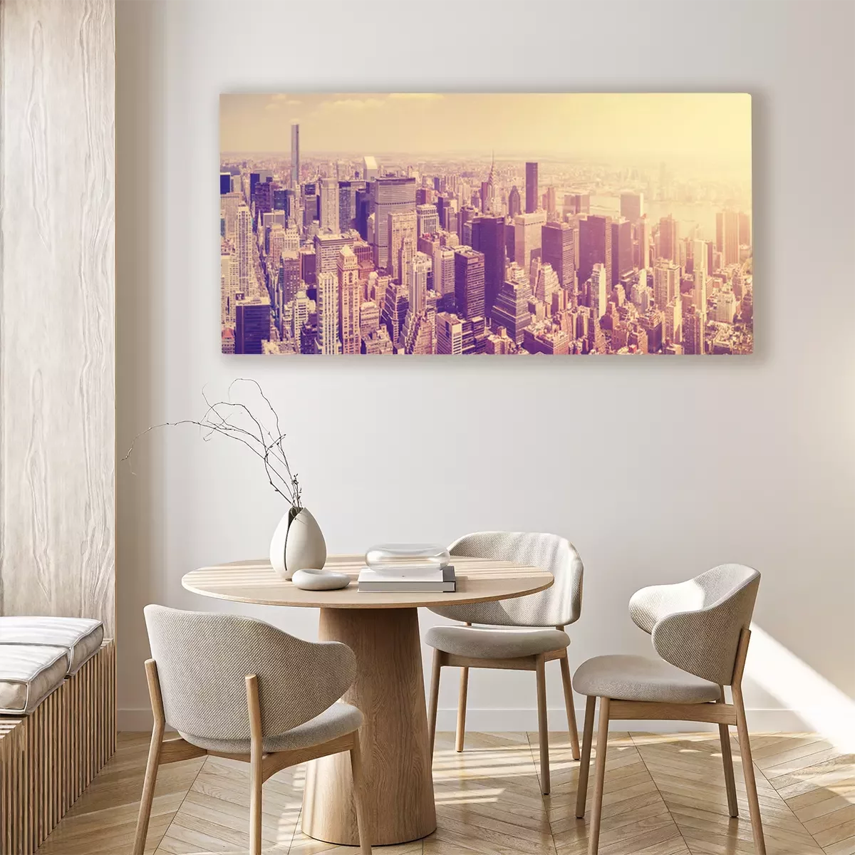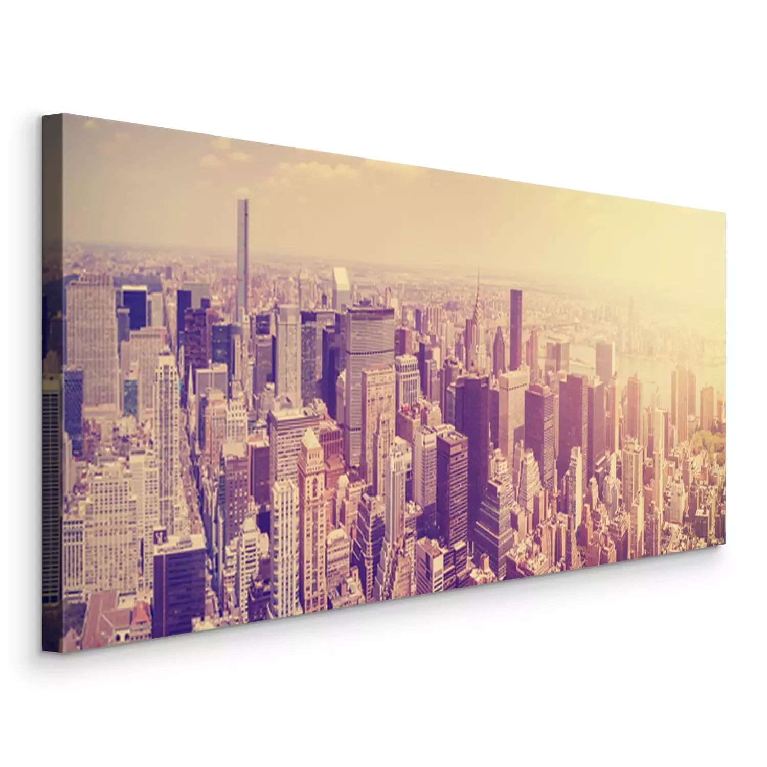 Canvas: Vintage afgezwakt Manhattan skyline bij zonsondergang, New York, USA.