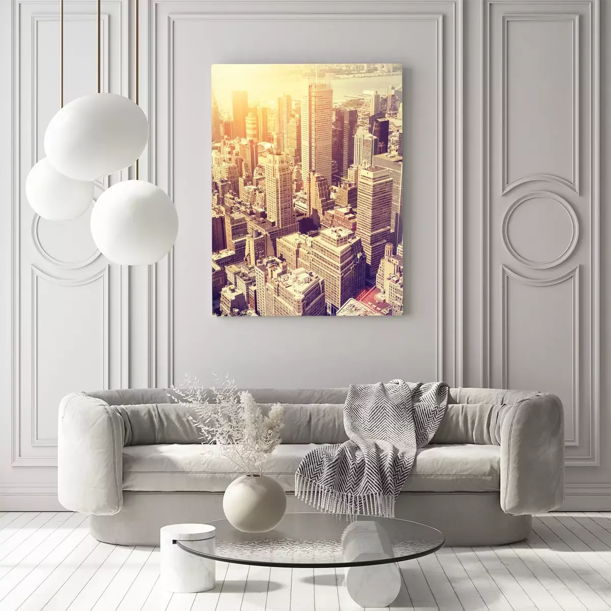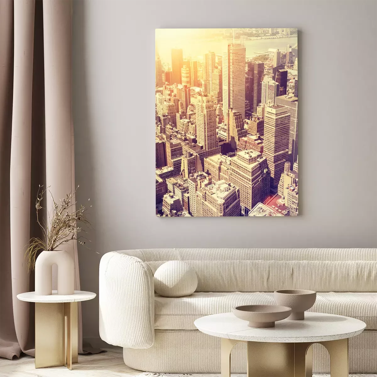 Canvas: Vintage afgezwakt zonsondergang over Manhattan, New York.