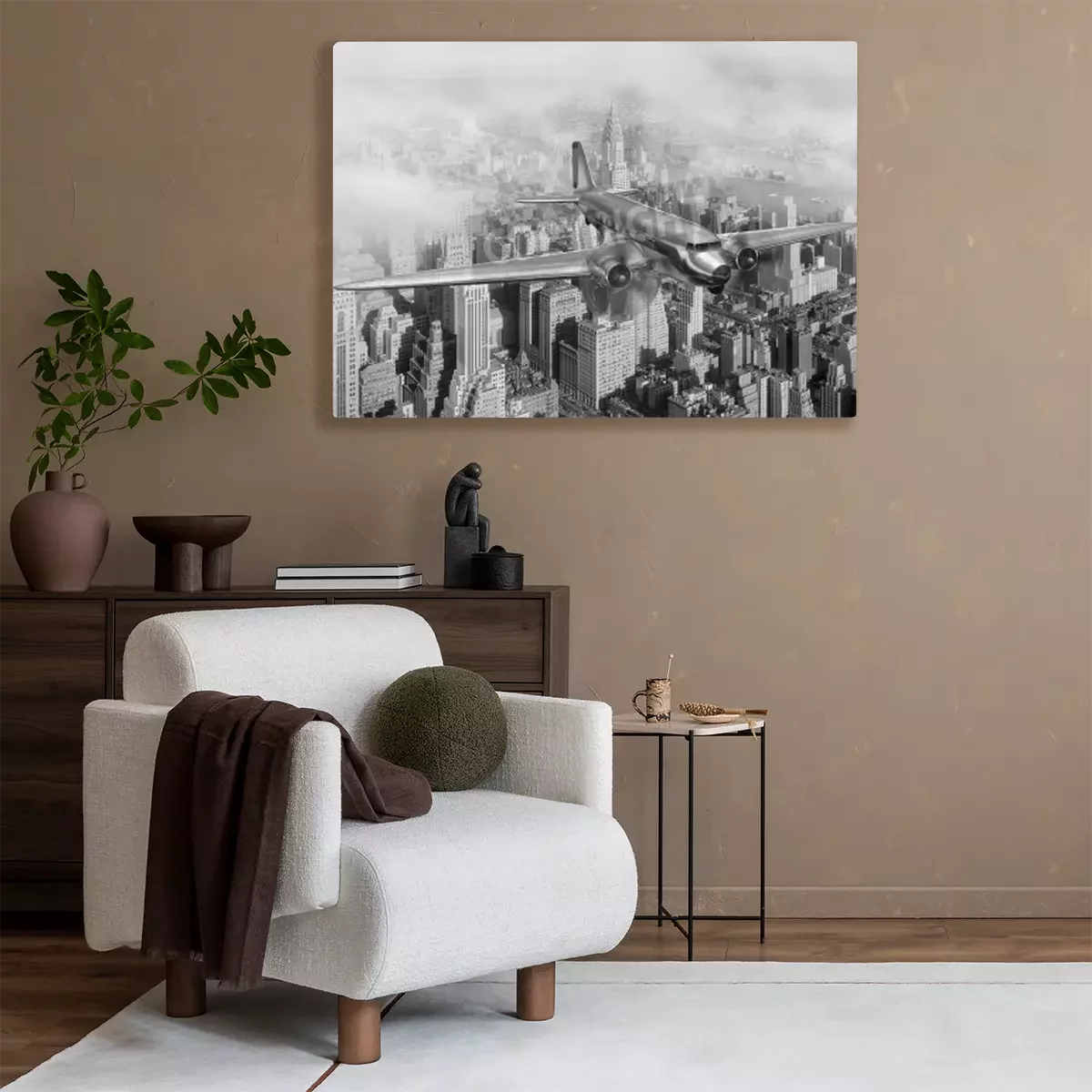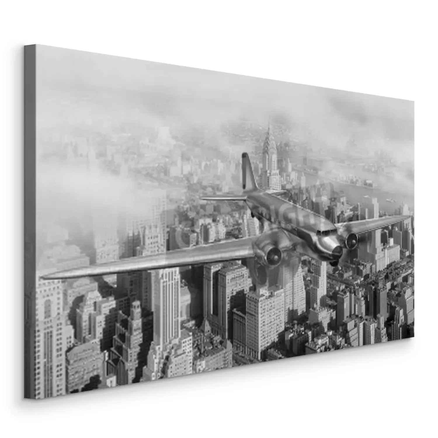 Canvas: Vintage beeld van een Douglas DC-3 boven New York City