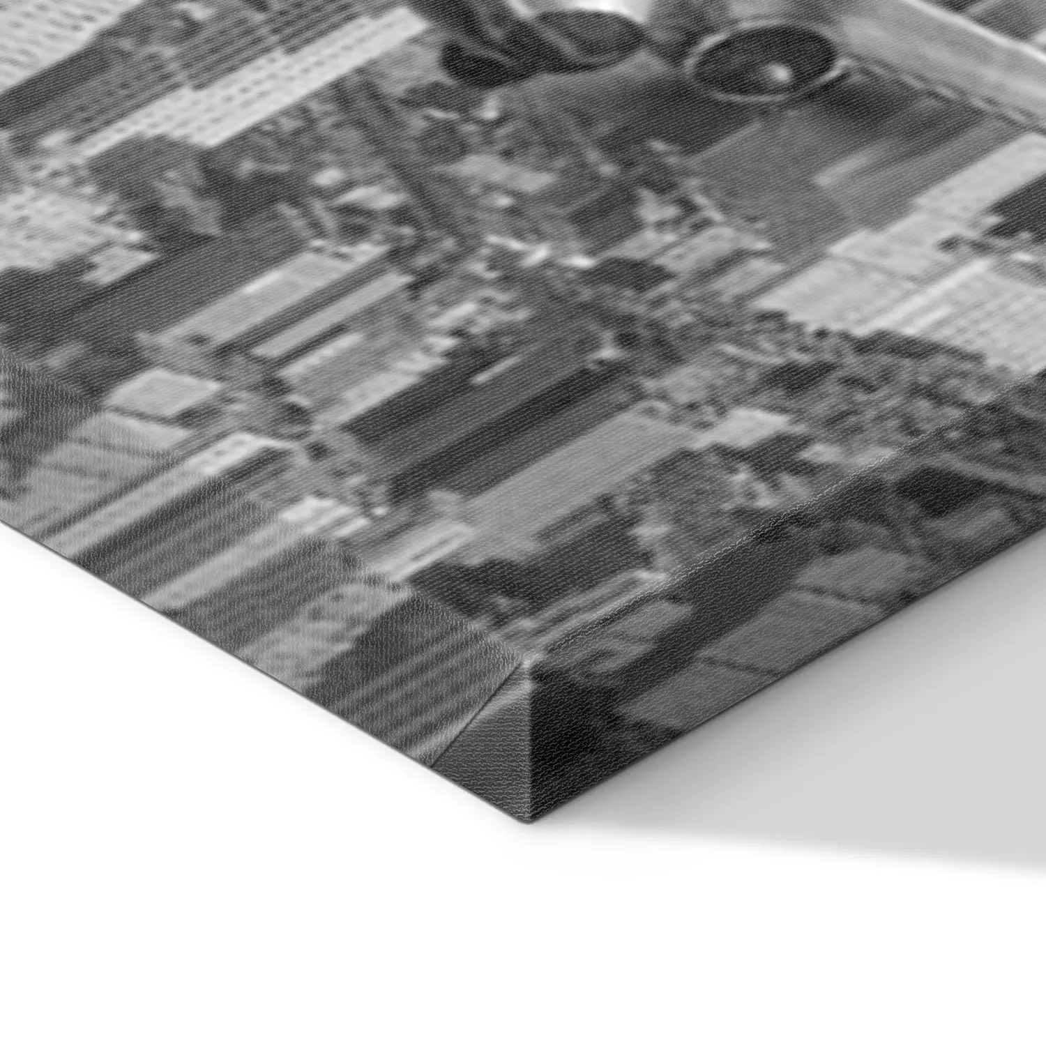 De print wordt aangebracht op hoogwaardig canvas dat op een schildersweefgetouw (spieraam) wordt gespannen. Omdat de print de zijranden bedekt, hoeft het ontwerp niet met een extra kader te worden omlijst. Wij raden ook composities aan die uit meerdere foto's bestaan en zo een coherente compositie vormen.