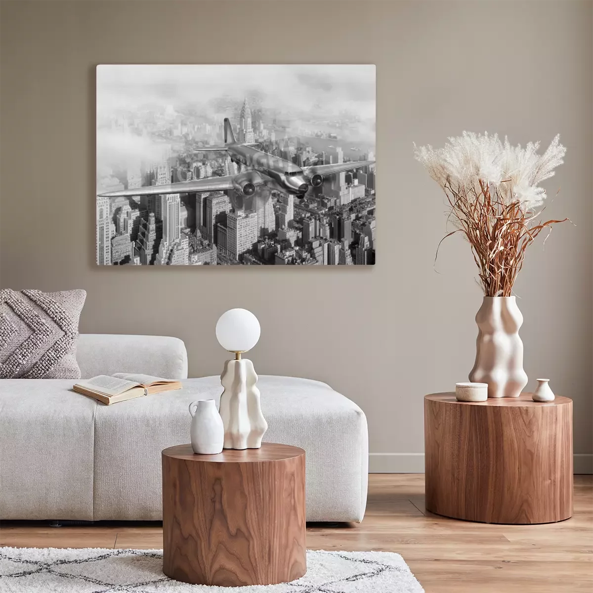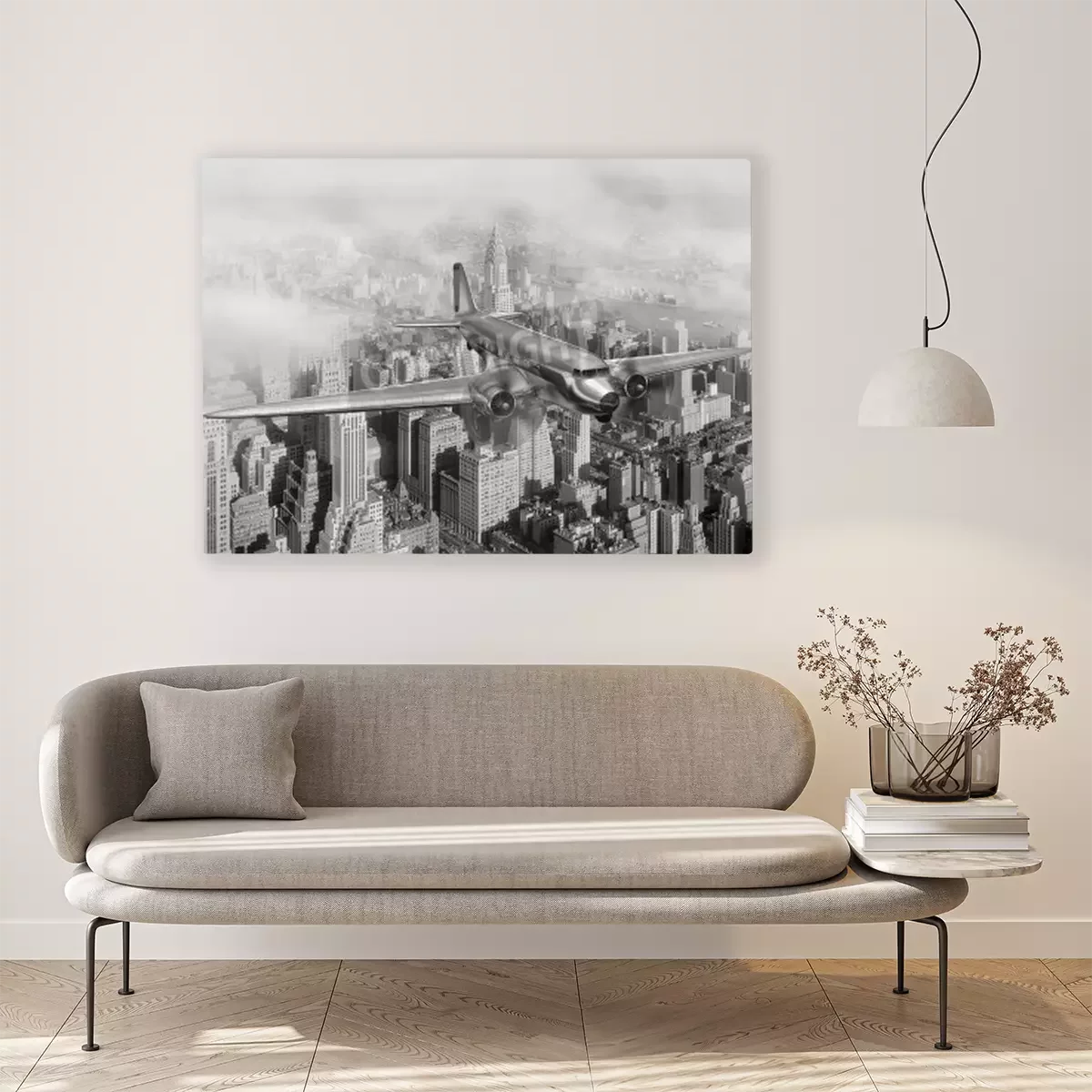 Canvas Vintage beeld van een Douglas DC-3 boven New York City