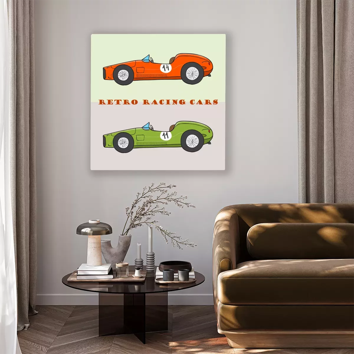 Canvas: Vintage cartoon raceauto. Vector doodle illustratie