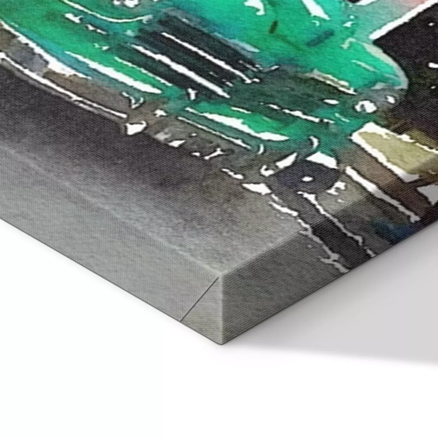 De print wordt aangebracht op hoogwaardig canvas dat op een schildersweefgetouw (spieraam) wordt gespannen. Omdat de print de zijranden bedekt, hoeft het ontwerp niet met een extra kader te worden omlijst. Wij raden ook composities aan die uit meerdere foto's bestaan en zo een coherente compositie vormen.