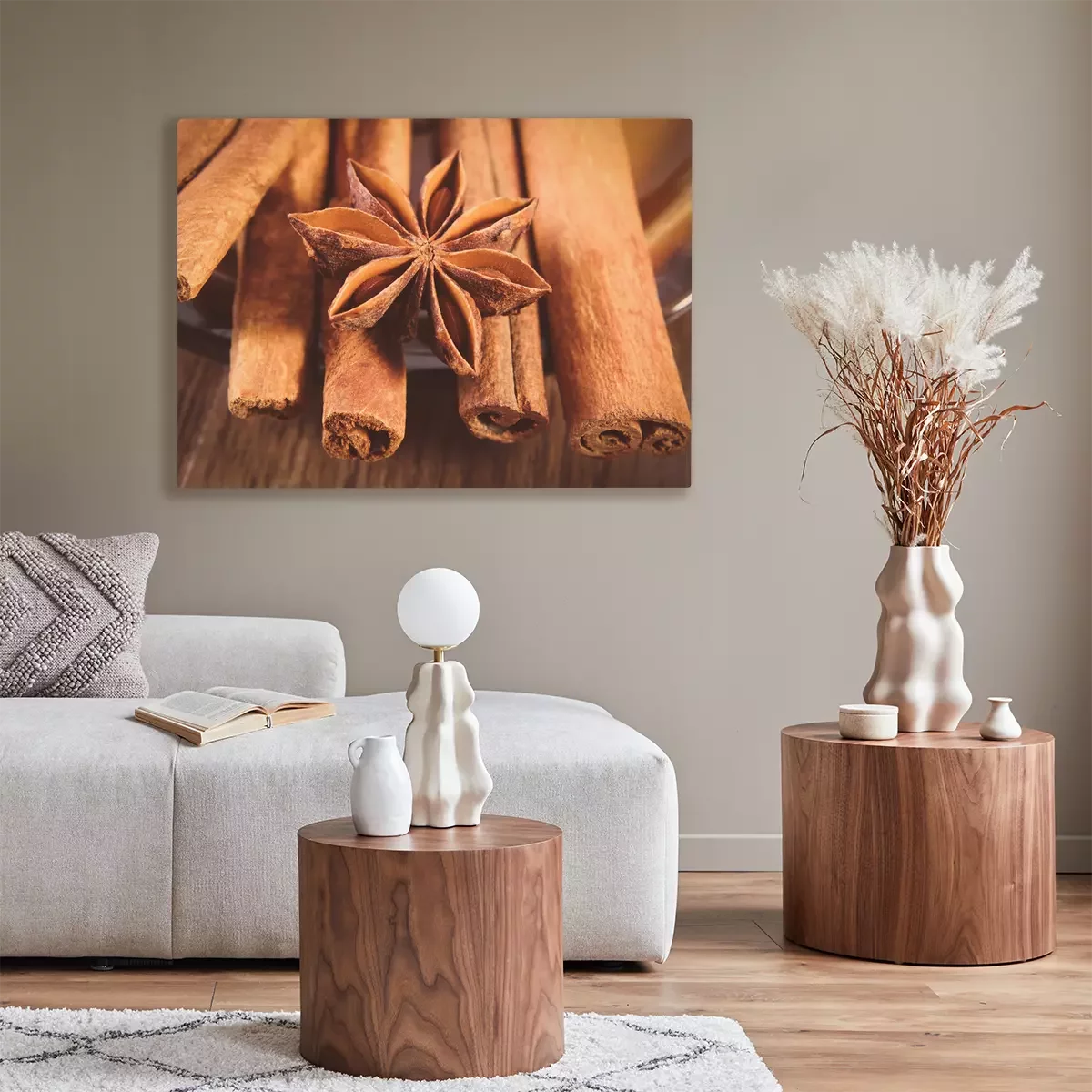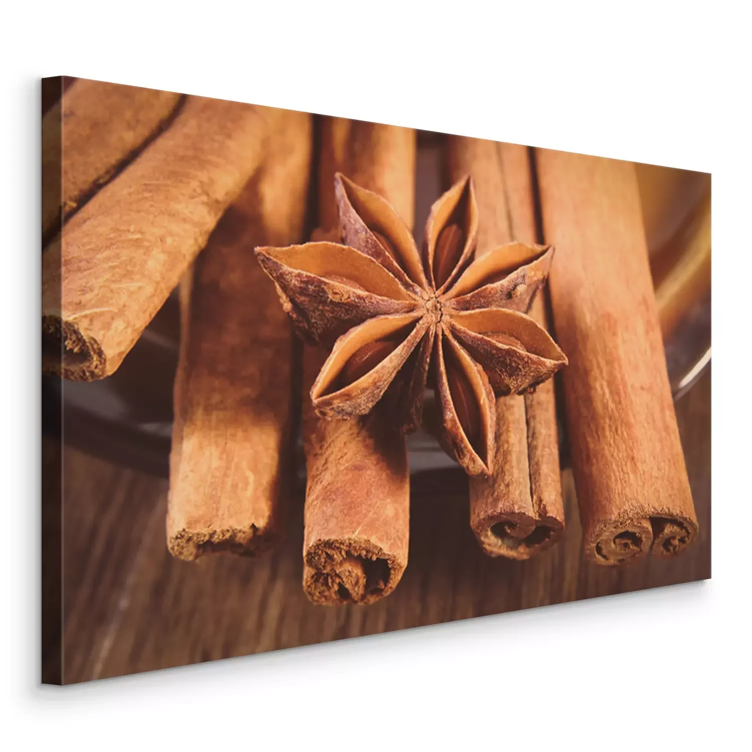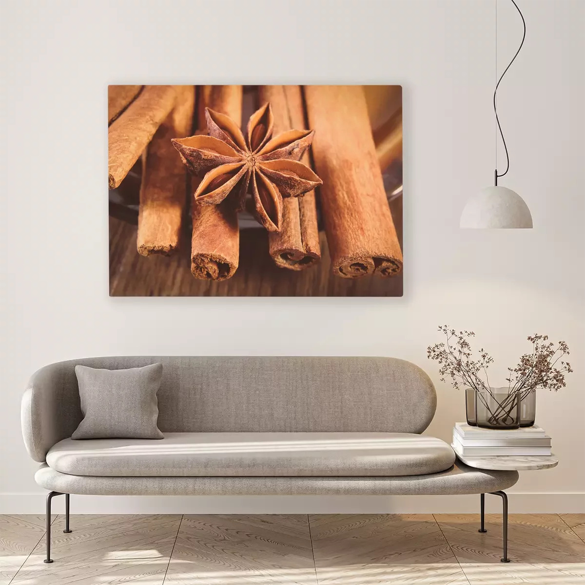 Canvas Vintage, Close-up van steranijs en geurige kaneel op houten oppervlakte plank