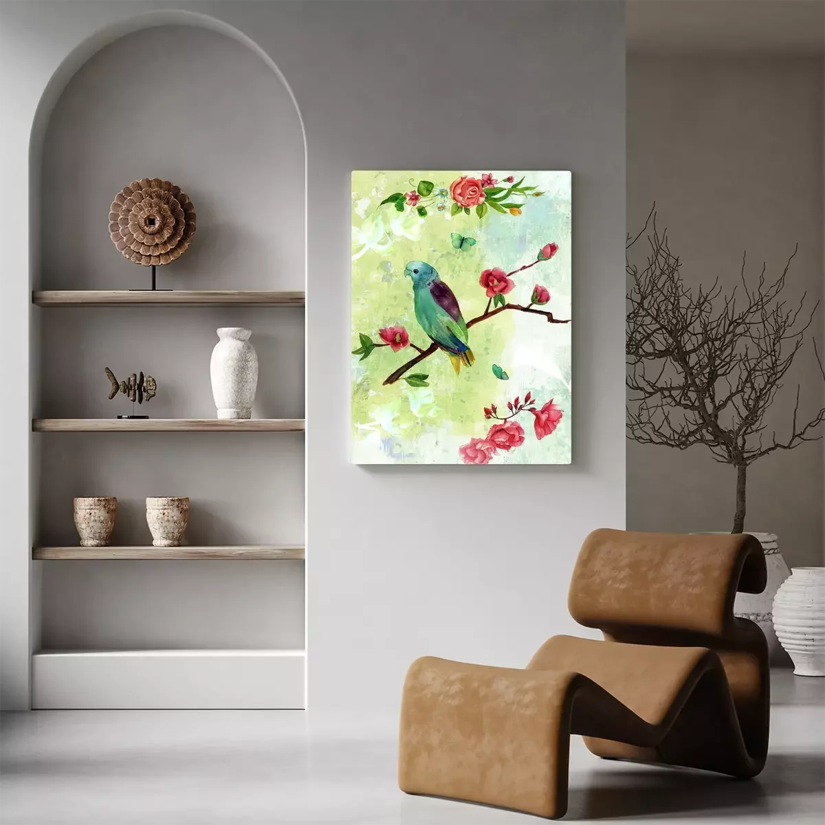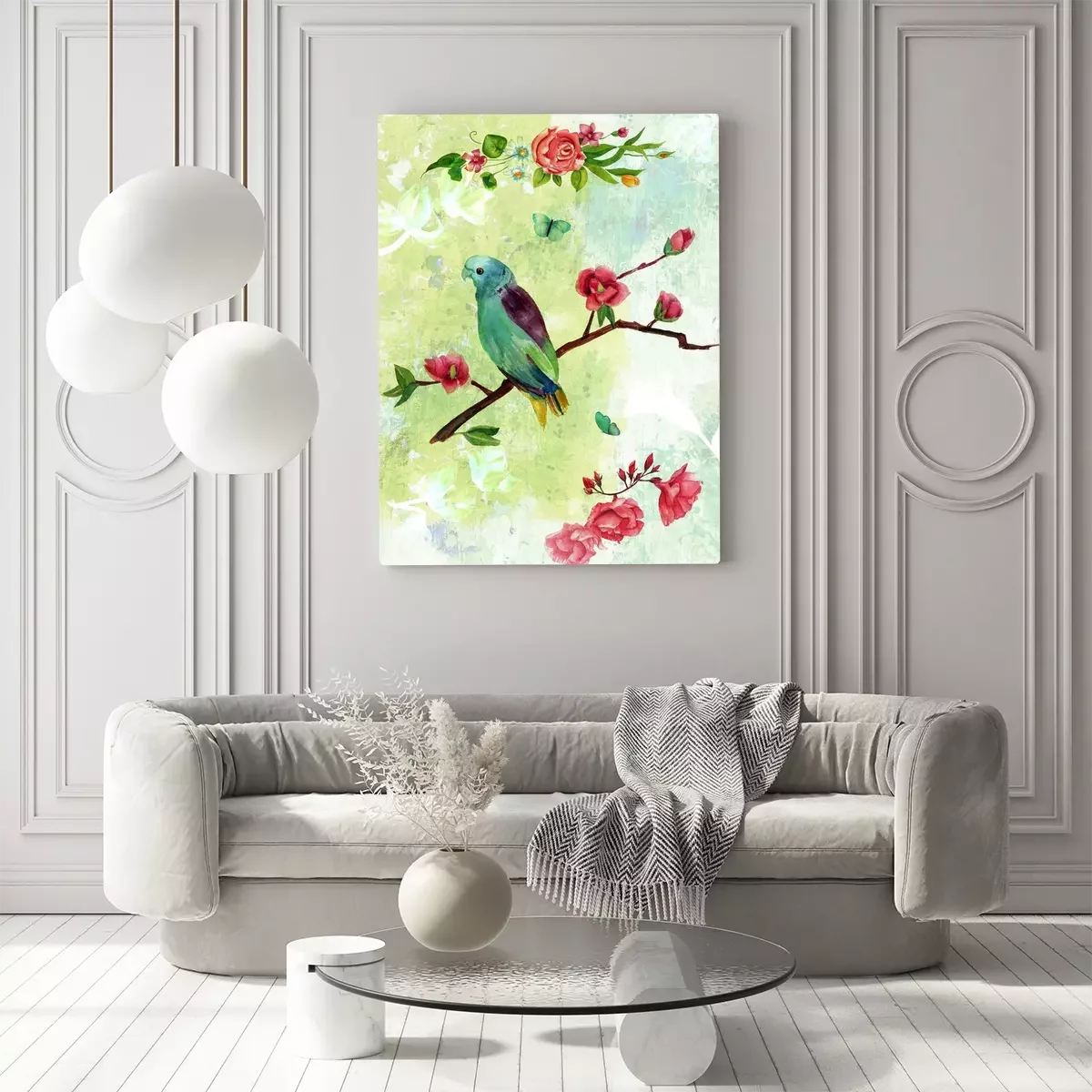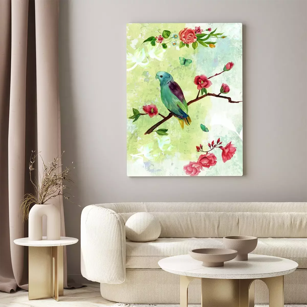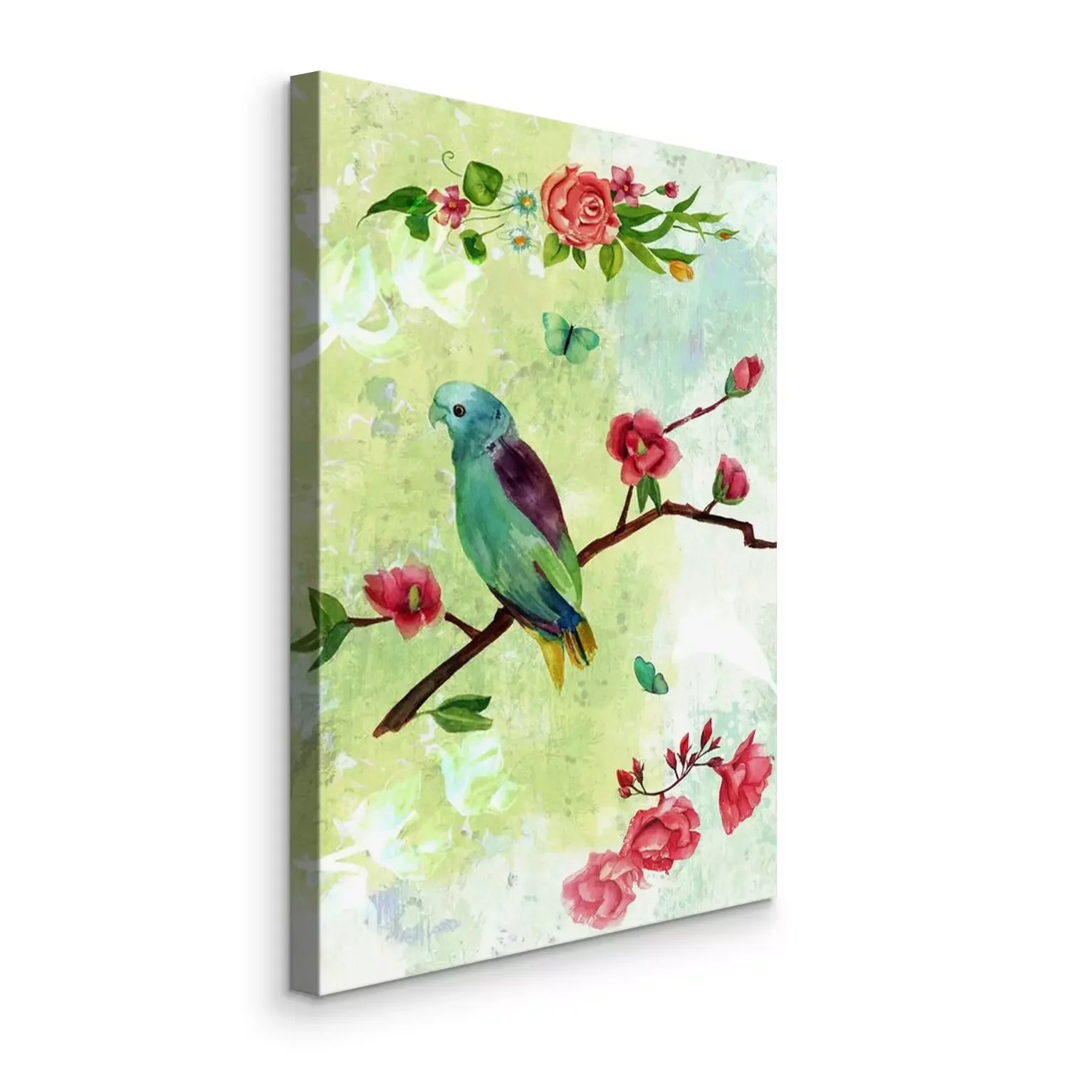 Canvas: Vintage collage briefkaart met vogels, vlinders en bloemen