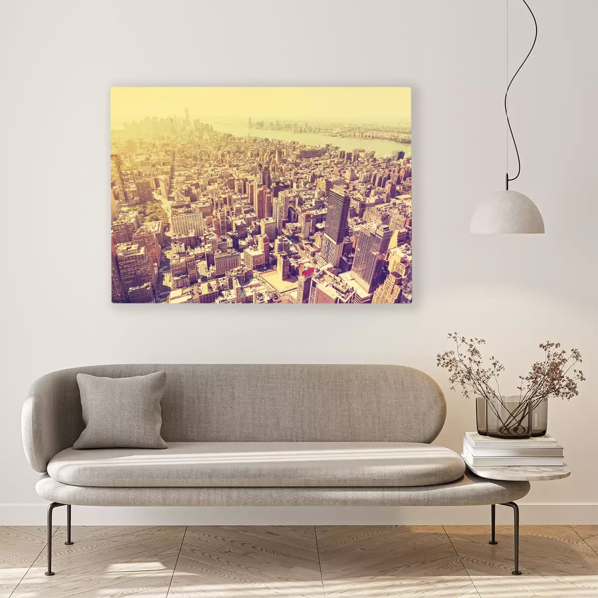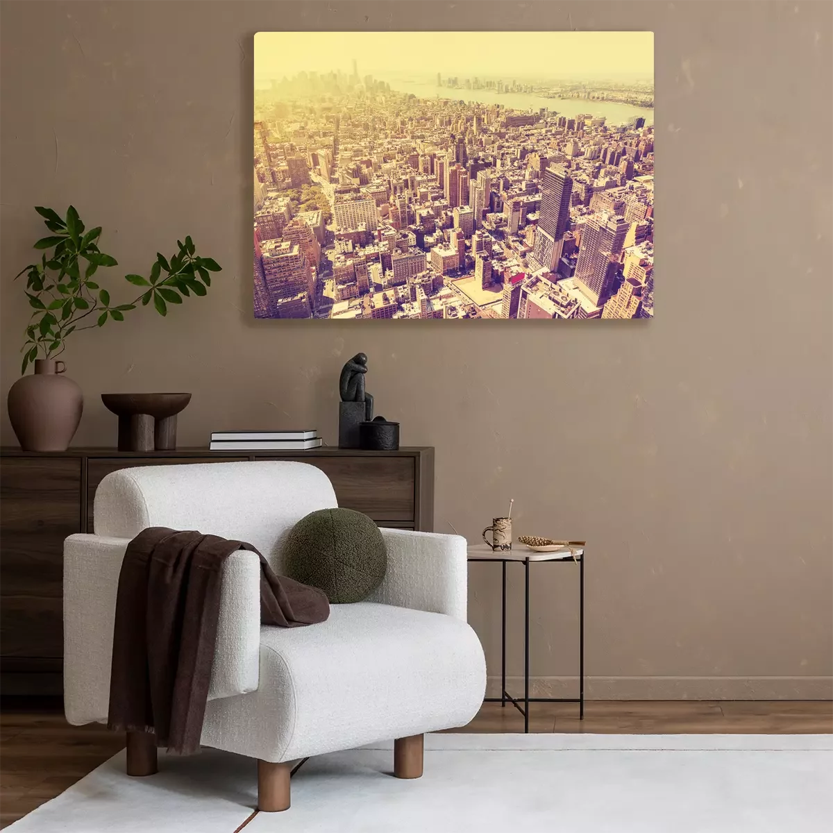 Canvas Vintage gefilterde afbeelding van zonsondergang over Manhattan, USA.