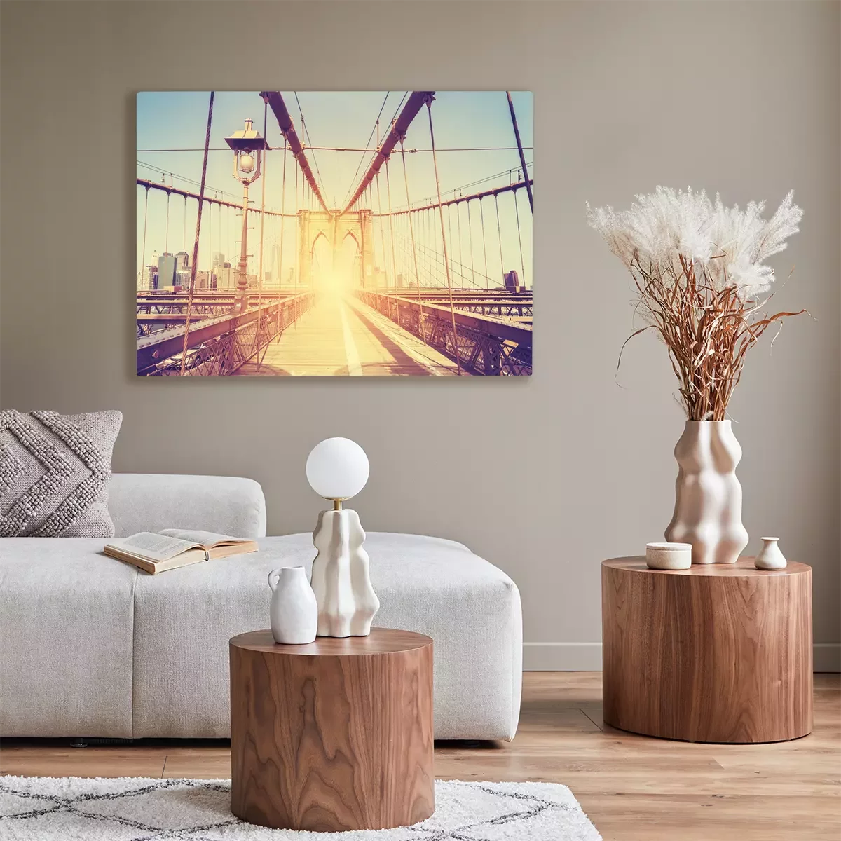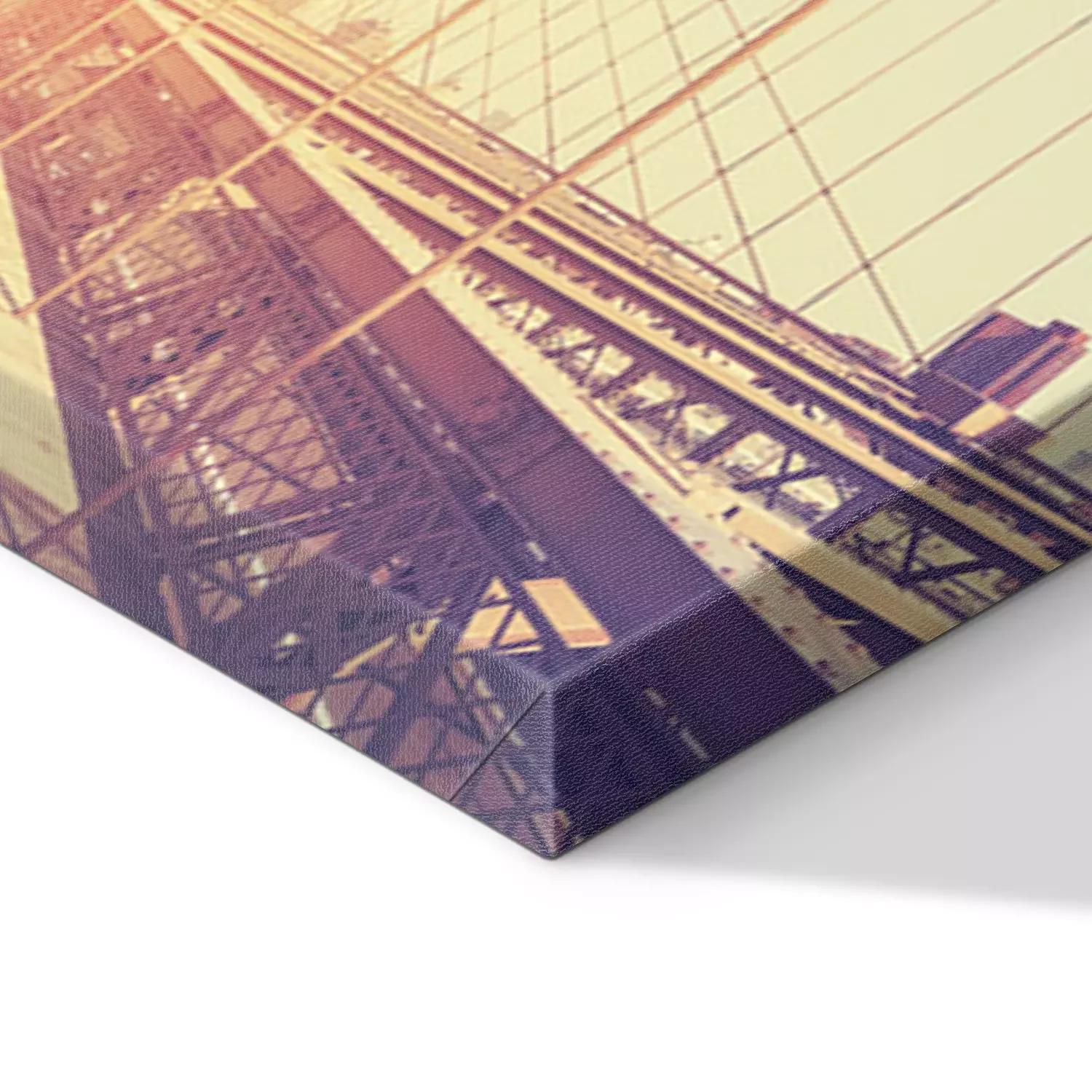 De print wordt aangebracht op hoogwaardig canvas dat op een schildersweefgetouw (spieraam) wordt gespannen. Omdat de print de zijranden bedekt, hoeft het ontwerp niet met een extra kader te worden omlijst. Wij raden ook composities aan die uit meerdere foto's bestaan en zo een coherente compositie vormen.