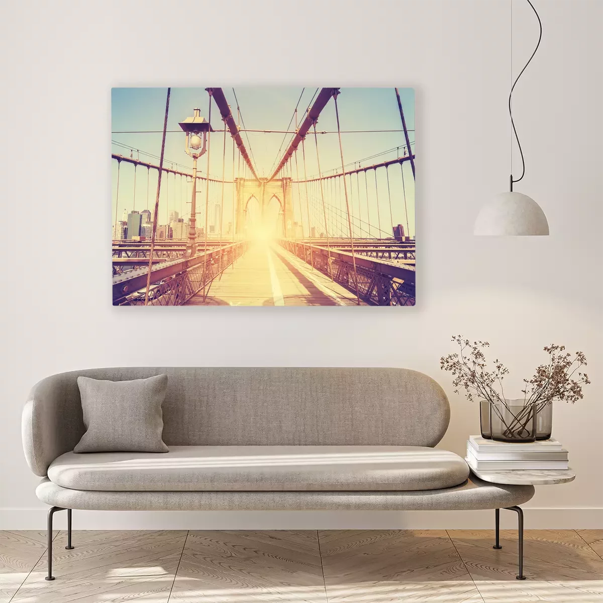Canvas: Vintage gestileerde foto van Brooklyn Bridge, NY.