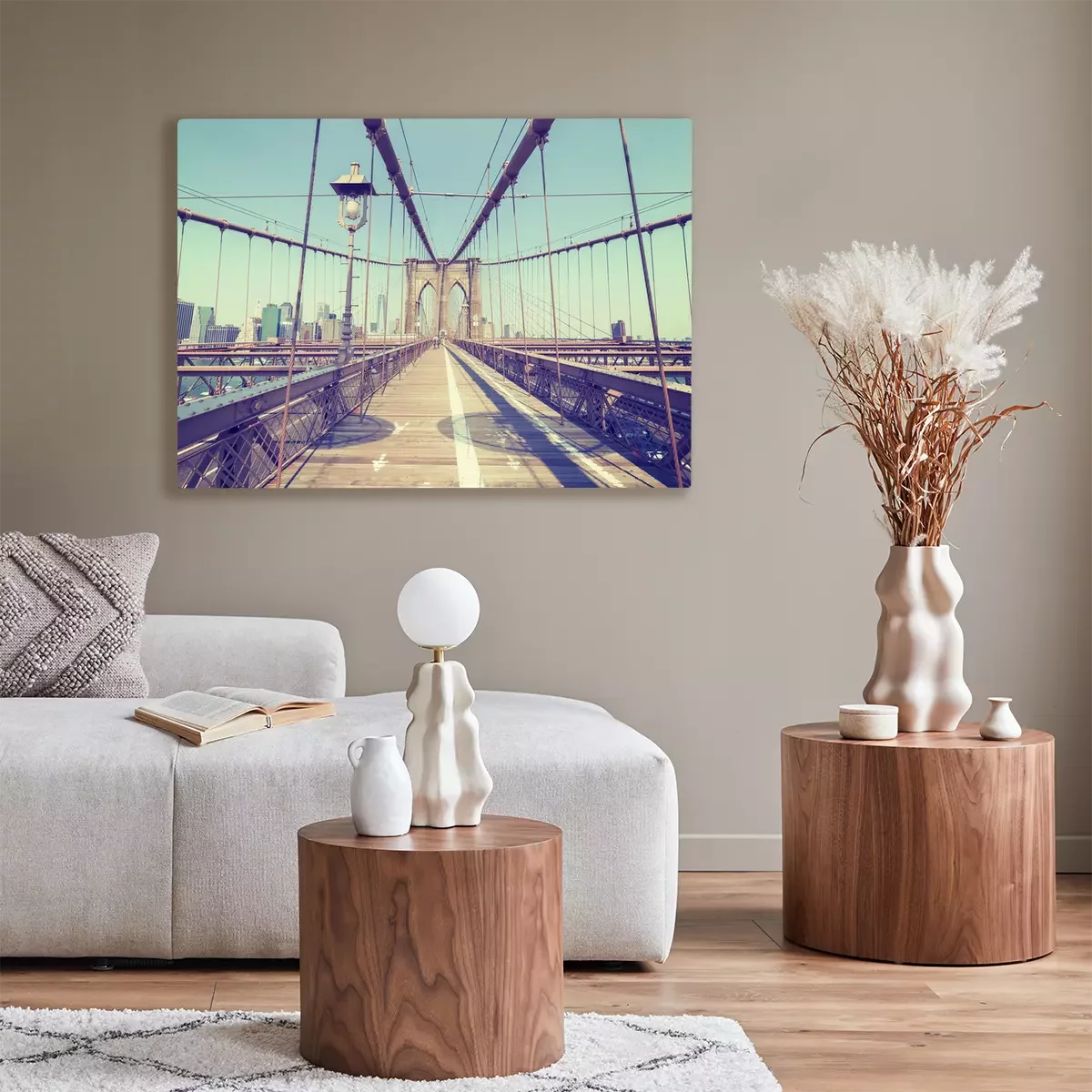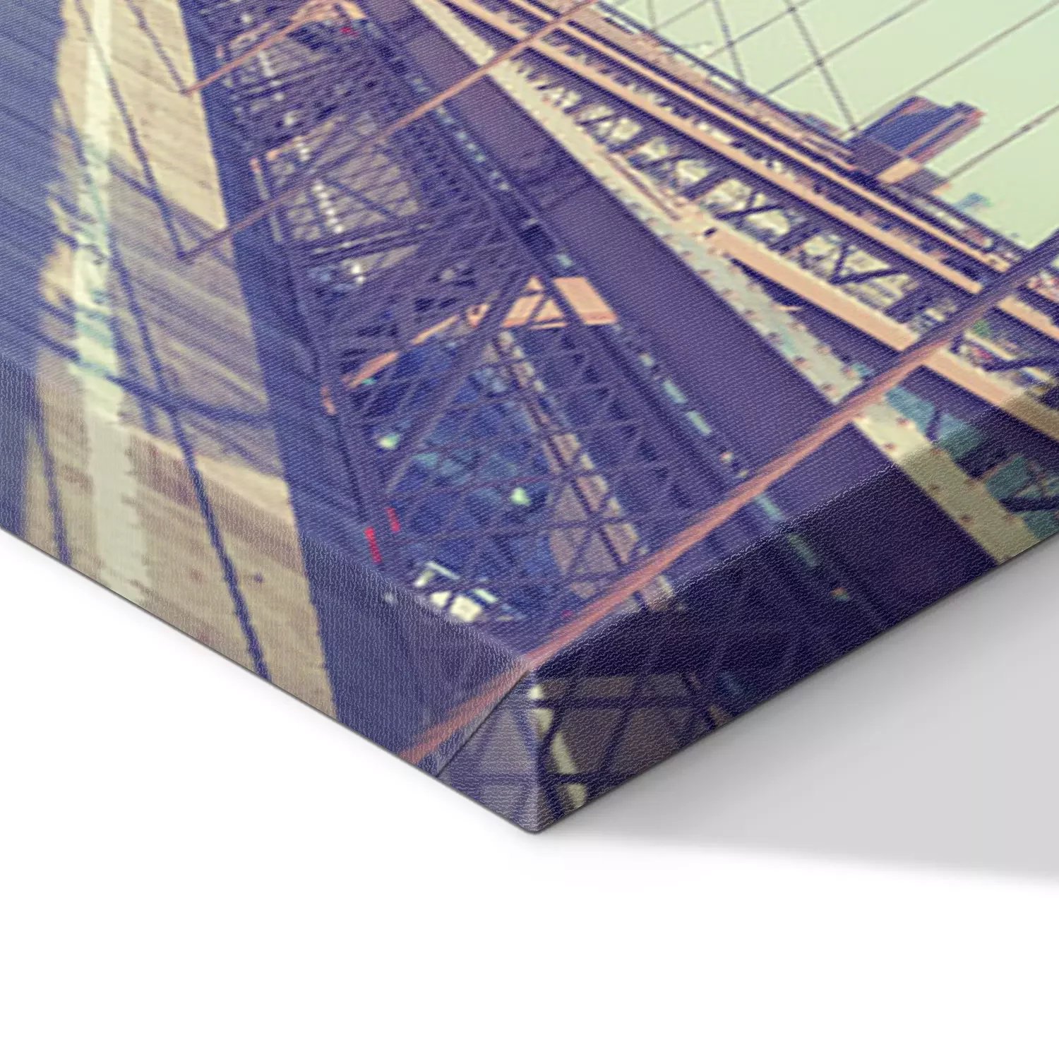 De print wordt aangebracht op hoogwaardig canvas dat op een schildersweefgetouw (spieraam) wordt gespannen. Omdat de print de zijranden bedekt, hoeft het ontwerp niet met een extra kader te worden omlijst. Wij raden ook composities aan die uit meerdere foto's bestaan en zo een coherente compositie vormen.